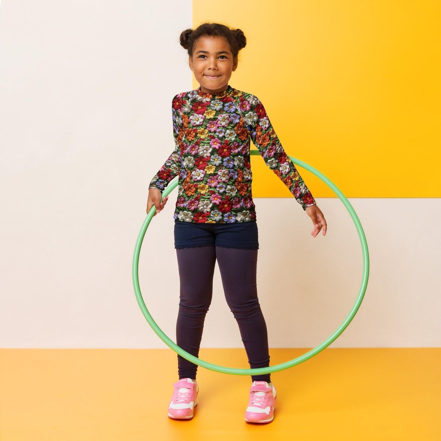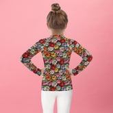 Kids Rash Guard, Floral crotchect colorful soft pattern litle girl spandex polyester fitted everyday school playground classroom clothing