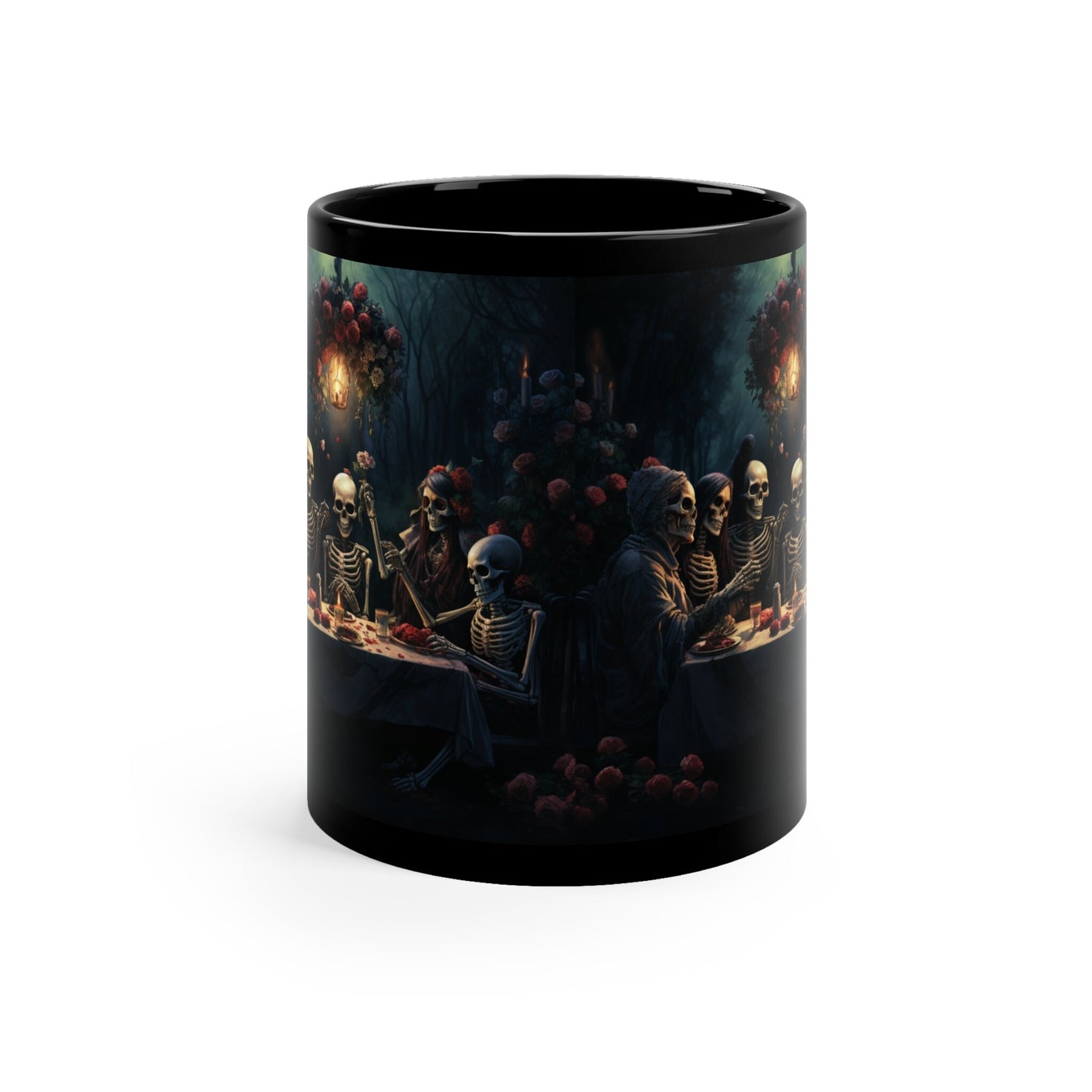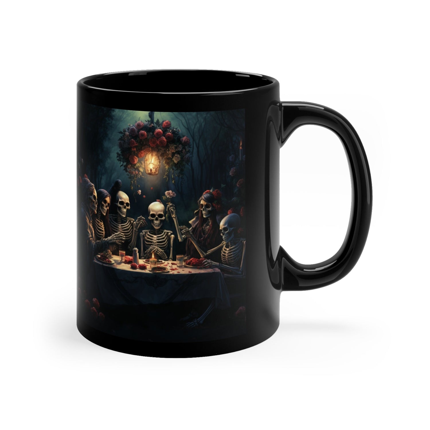 11oz Black Mug,Black Mug, Dia de Los Muertos, Day Of the Dead, Halloween Mug, Festive mug, Skeleton Family, Halloween Dinner, Novelty Mug