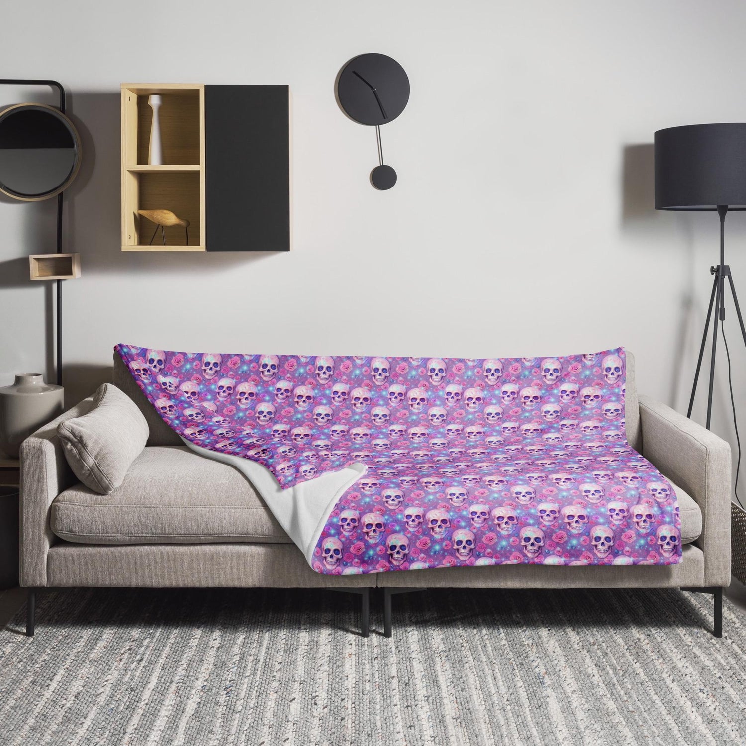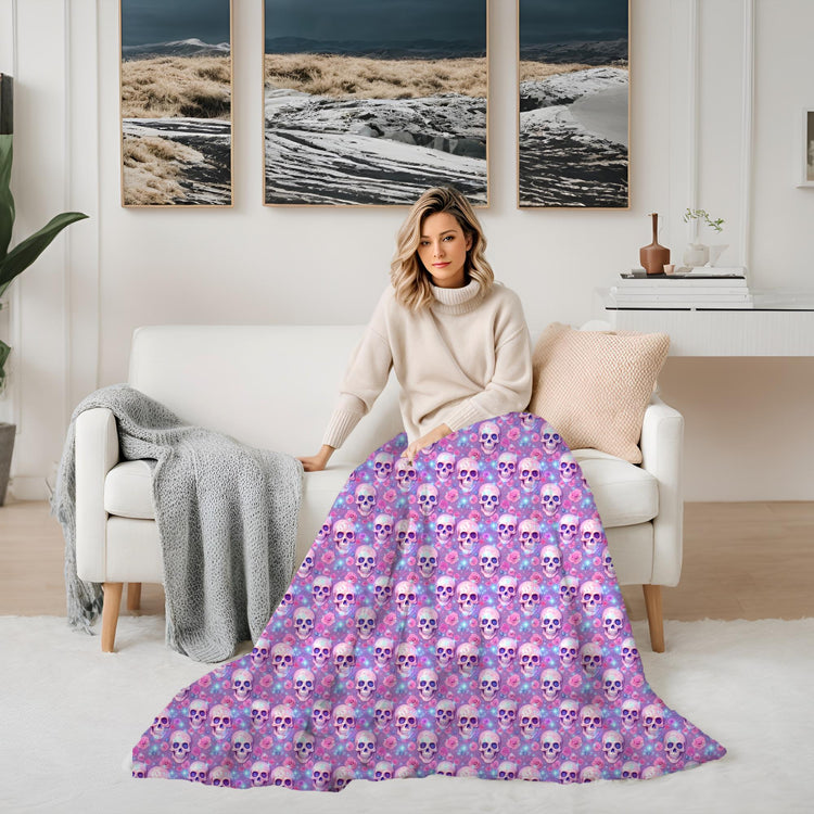 Neon skull design Throw Blanket Halloween Day of the Dead festive soft cozy child adult any room latino heritage month modern day fleece