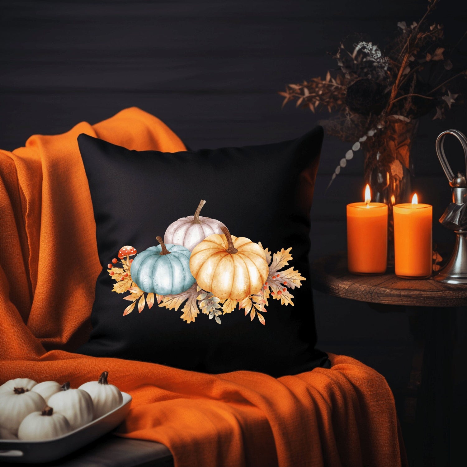 Square Pillow, Thanksgiving black pumpkin theme decorative throw holiday Fall vibes couch chair bed cushion