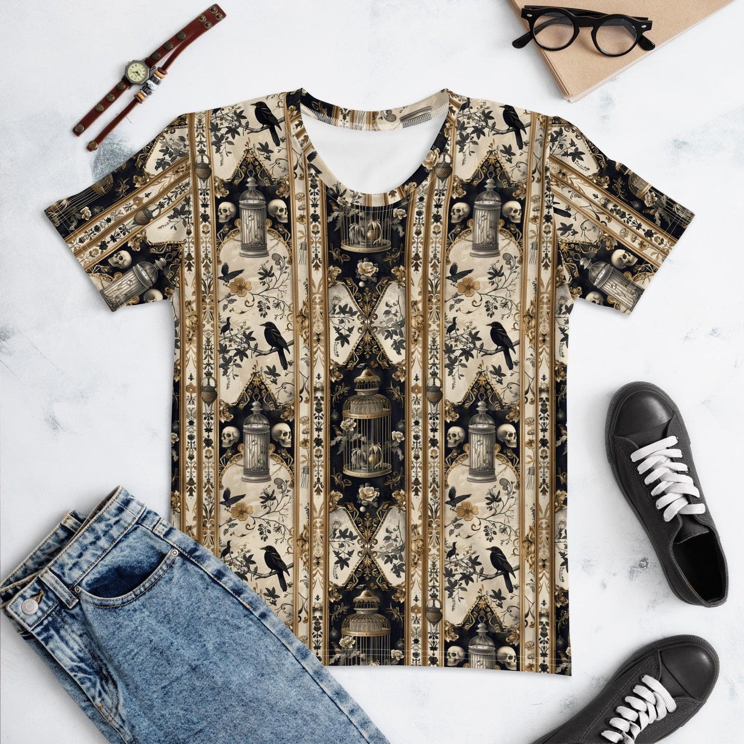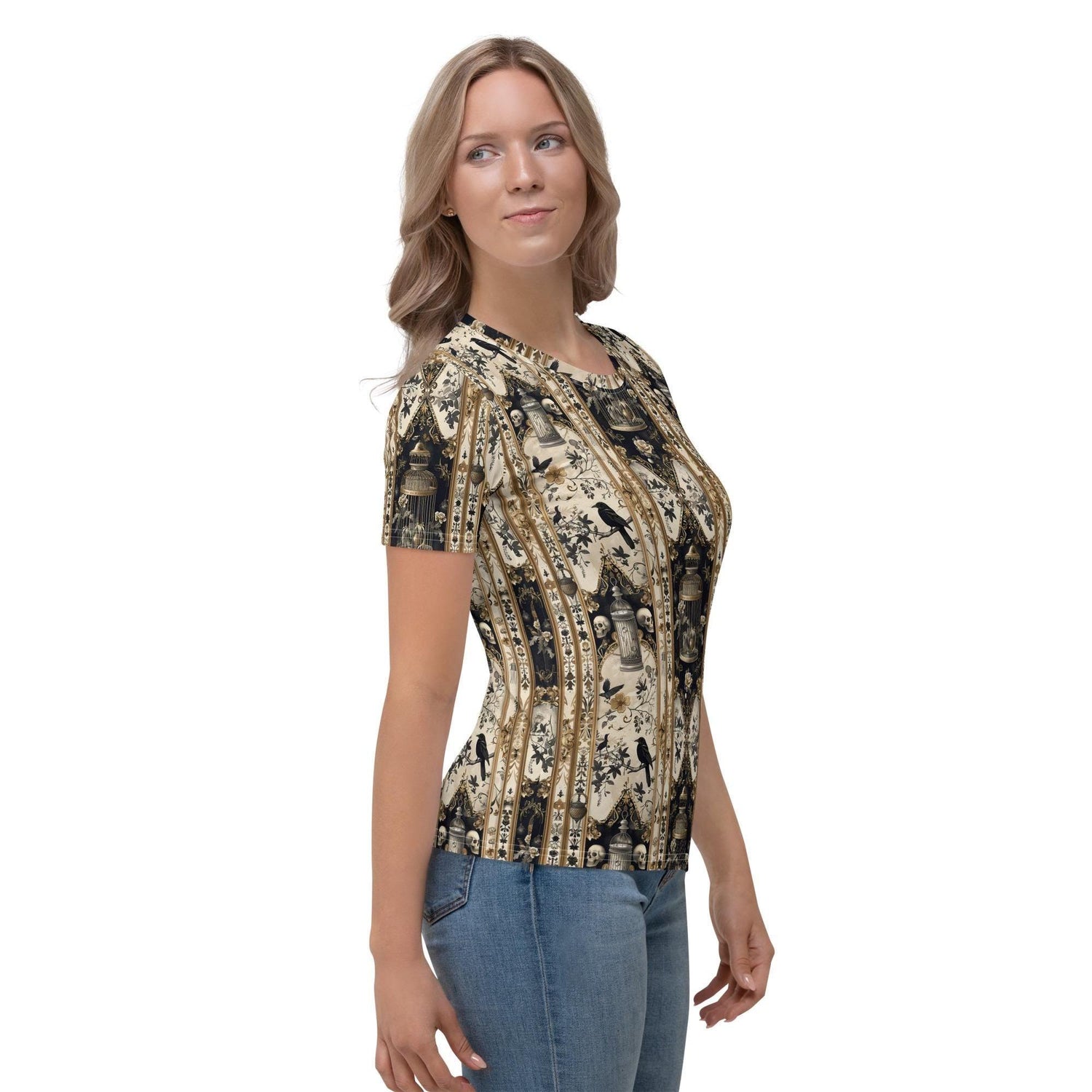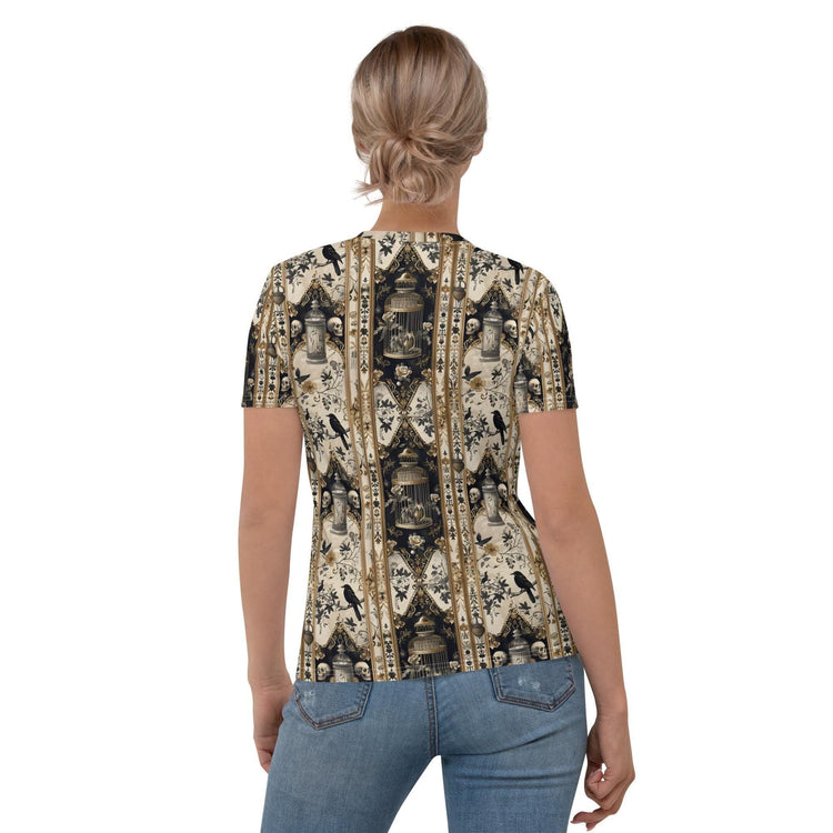 Women's T-shirt, Gothic pattern print all over smooth soft Halloween theme casual cool everyday clothing female jean wear