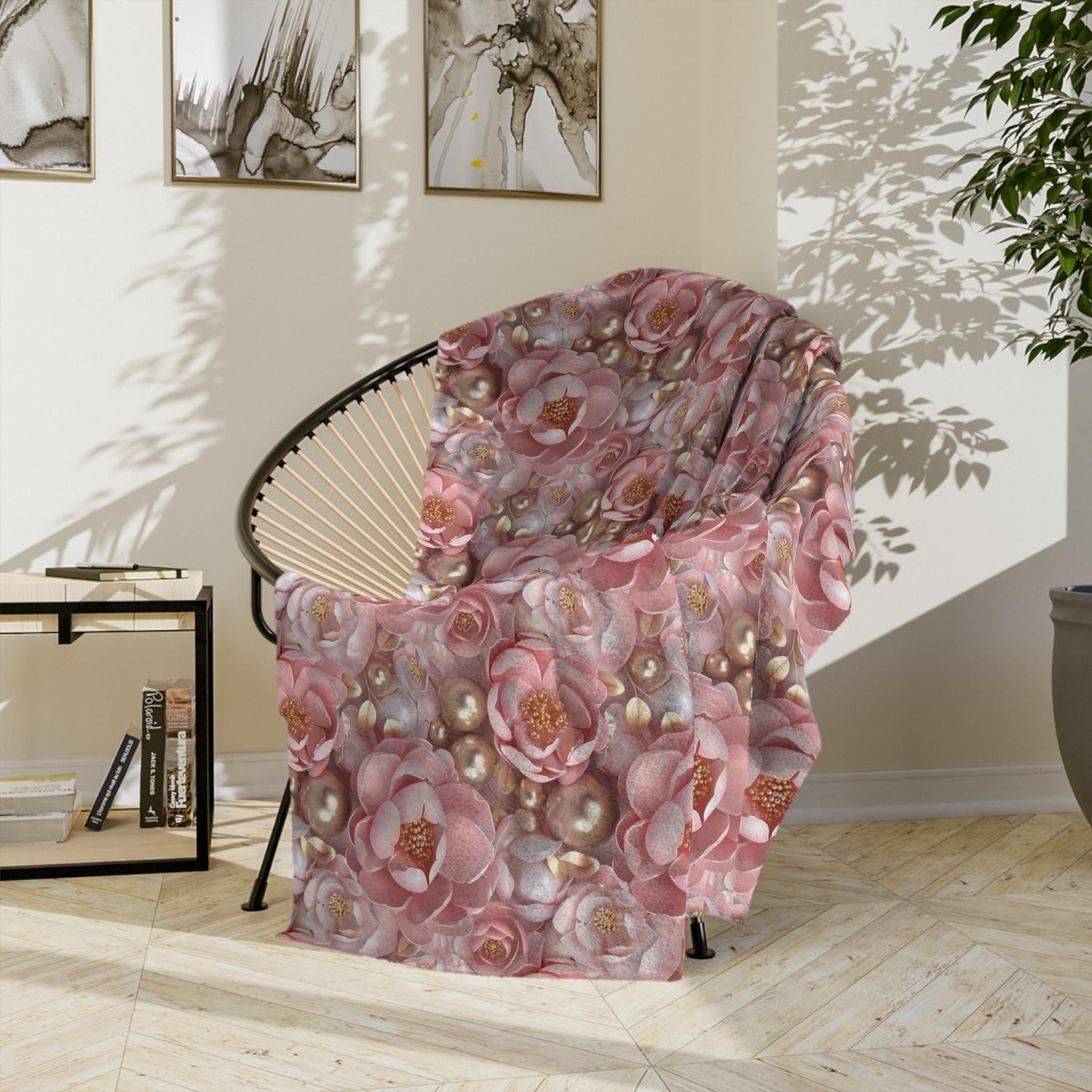 Blush Floral Velveteen Microfiber Blanket - Cozy Home Decor, Luxury Throw Blanket, Gift for Her, 3D Bedroom Accent, Wedding Gift