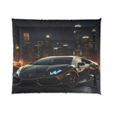 Comforter, Shiny Black Lamborghini designer style warm weather cozy fluffy unique bedspread quilt for Teen Room