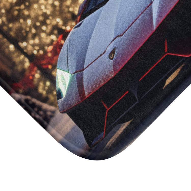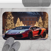 Red Lamborghini Holiday Scenery Bath Mat | Luxury Car Decor | Christmas Gift Ideas