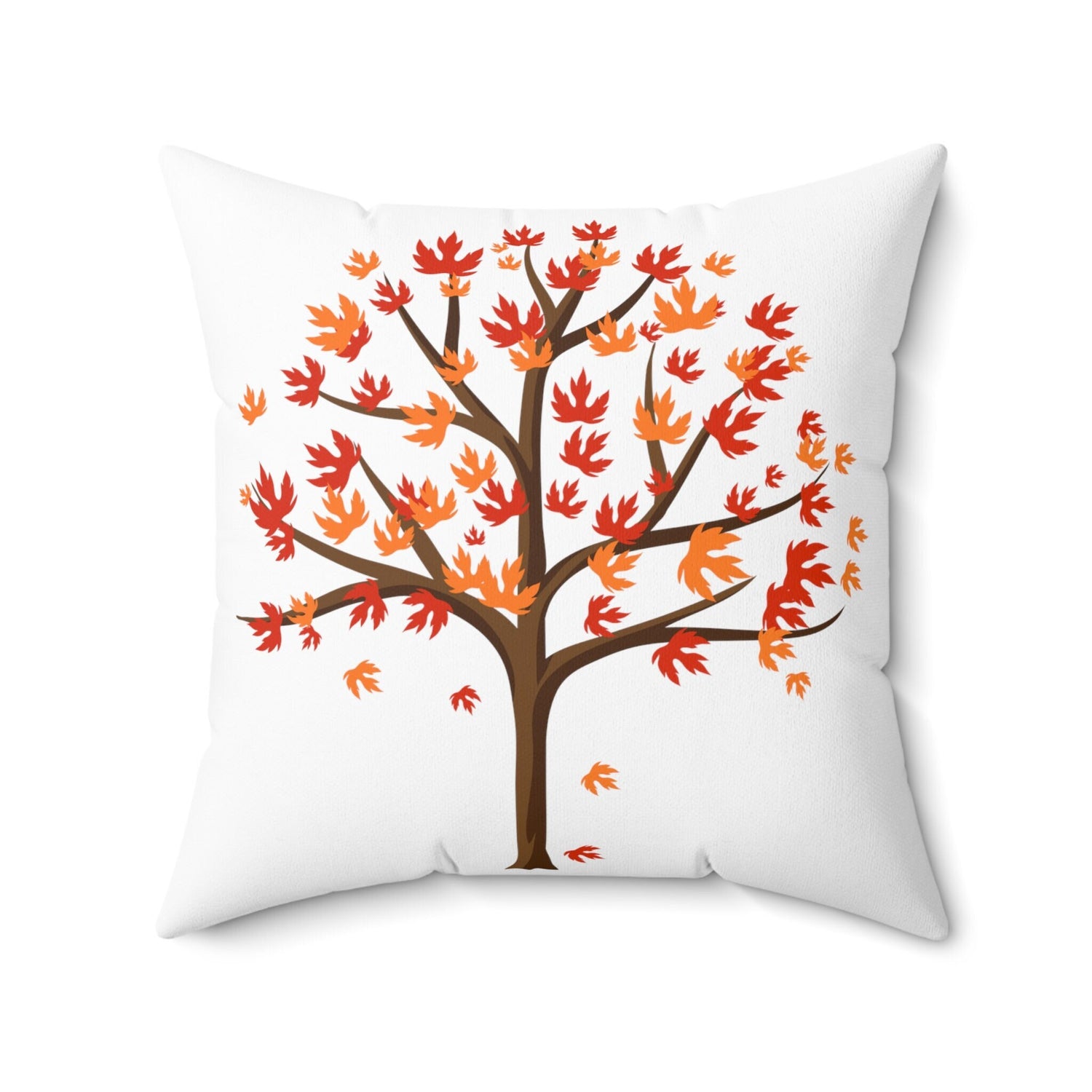 Spun Polyester Square Fall Pillow Autumn tree falling leaves print casual minimalist chair couch bed cushion sham