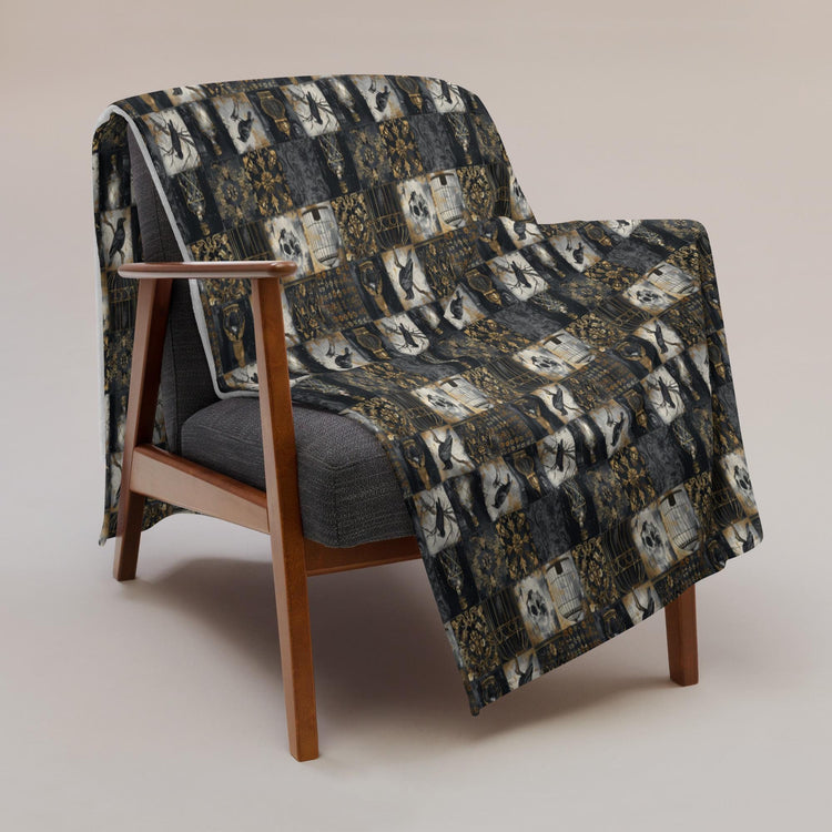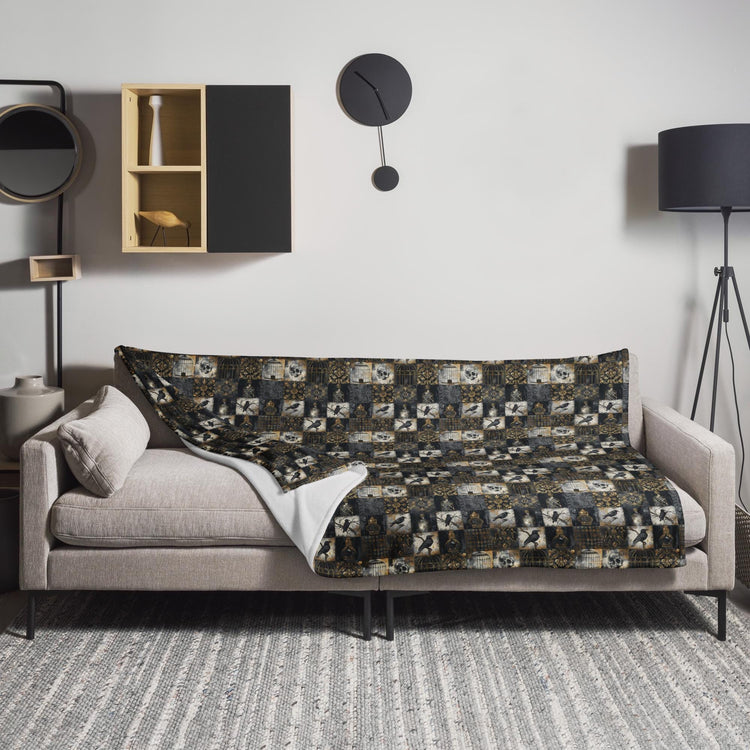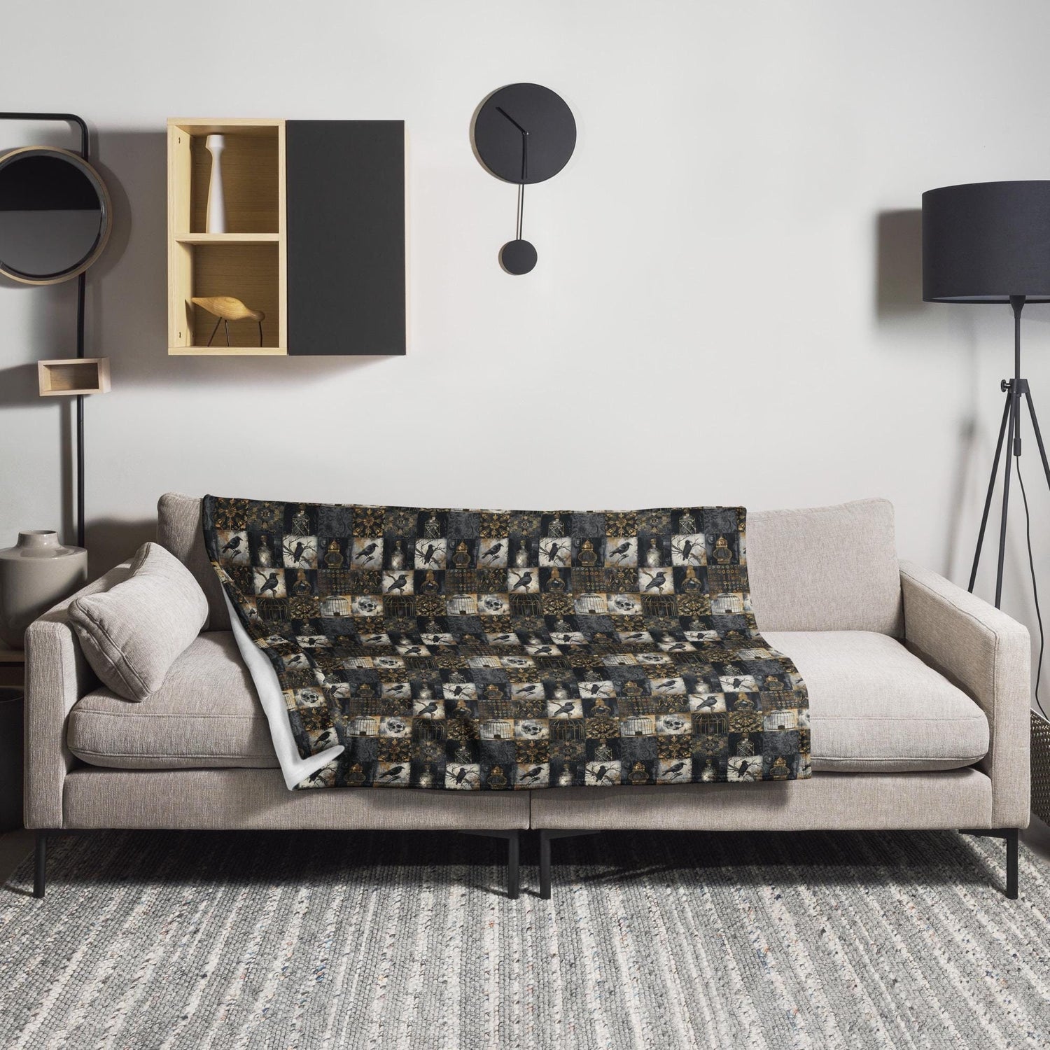 Throw Blanket, Gothic fall halloween skeleton print pattern eye catching fashion look couch bed TV room gathering cozy night cuddle blanket