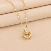 Double-layer Love Necklace With Rhinestones |Titanium Steel Pendant Fashion Jewelry