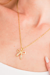 Gold Plated Rhinestone Bowknot Pendant Necklace