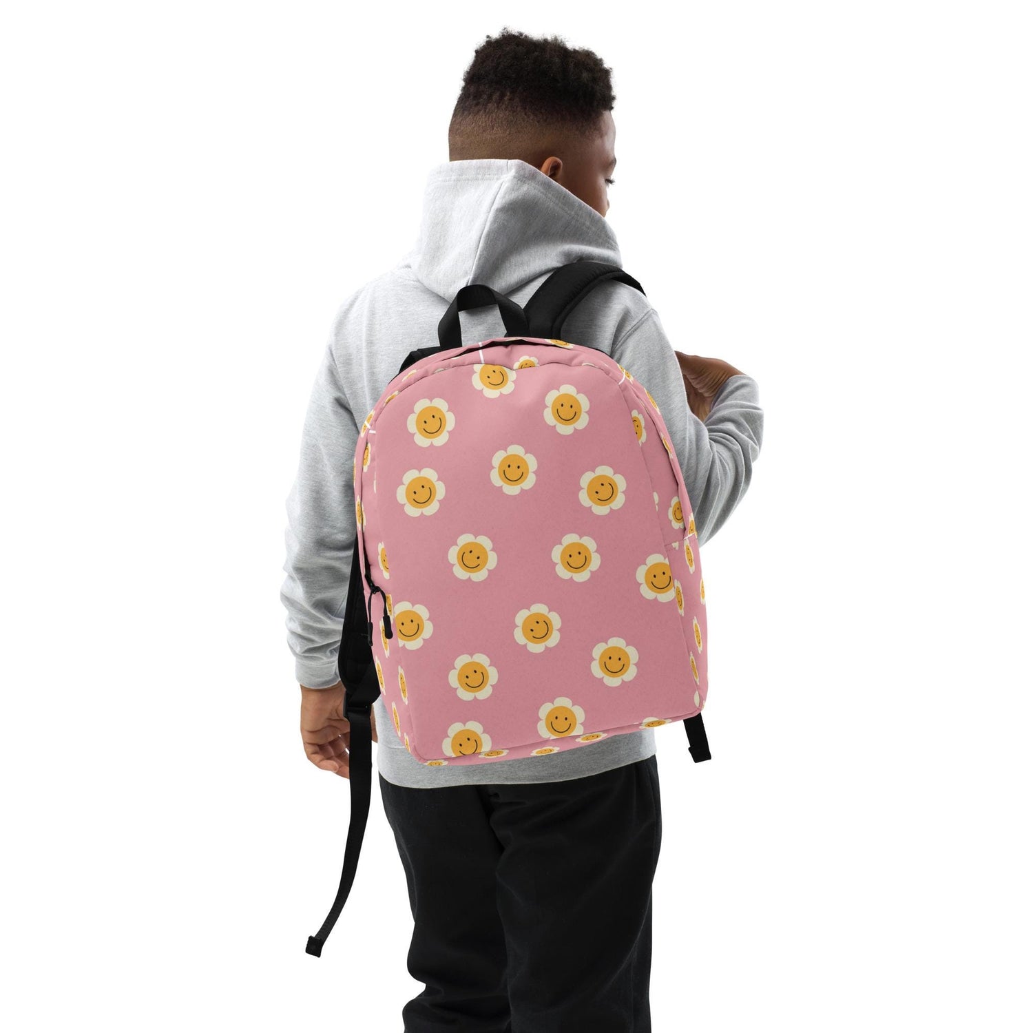 Minimalist Backpack, Kid Friendly elementary school age child custom daisy flower print every day Ipad computer pencil crayon carry tote bag