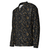 Perfect for any occasion, whether you're stepping out for a night on the town, adding flair to your casual look, or looking for an unforgettable gift. With its sleek black fabric and shimmering gold accents, this bomber jacket is not just outerwear—it's a wearable work of art.