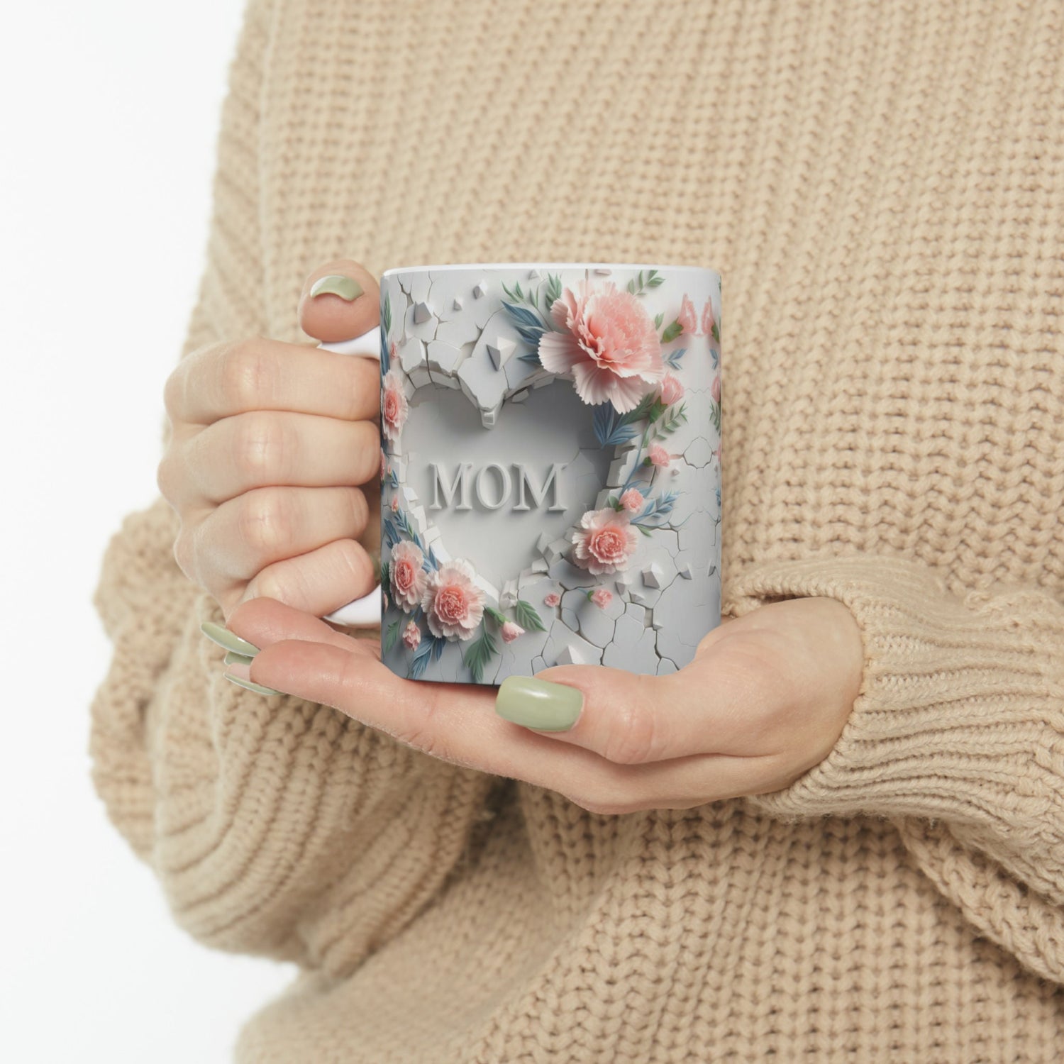 🌟 Order today and give the gift of beauty and practicality with this elegant 3D floral mug – perfect for any Mom who deserves something special!