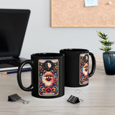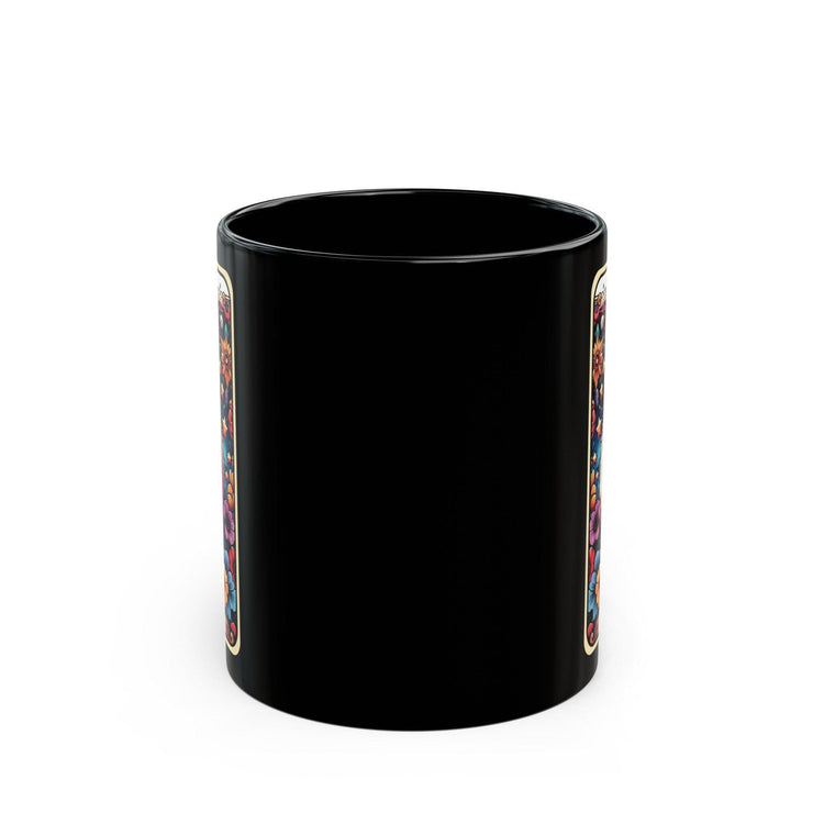 Black Mug (11oz) Pomeranian portrait coffee drinking mug, Celestial Tarot card design, pet lover gift, colorful daily cup
