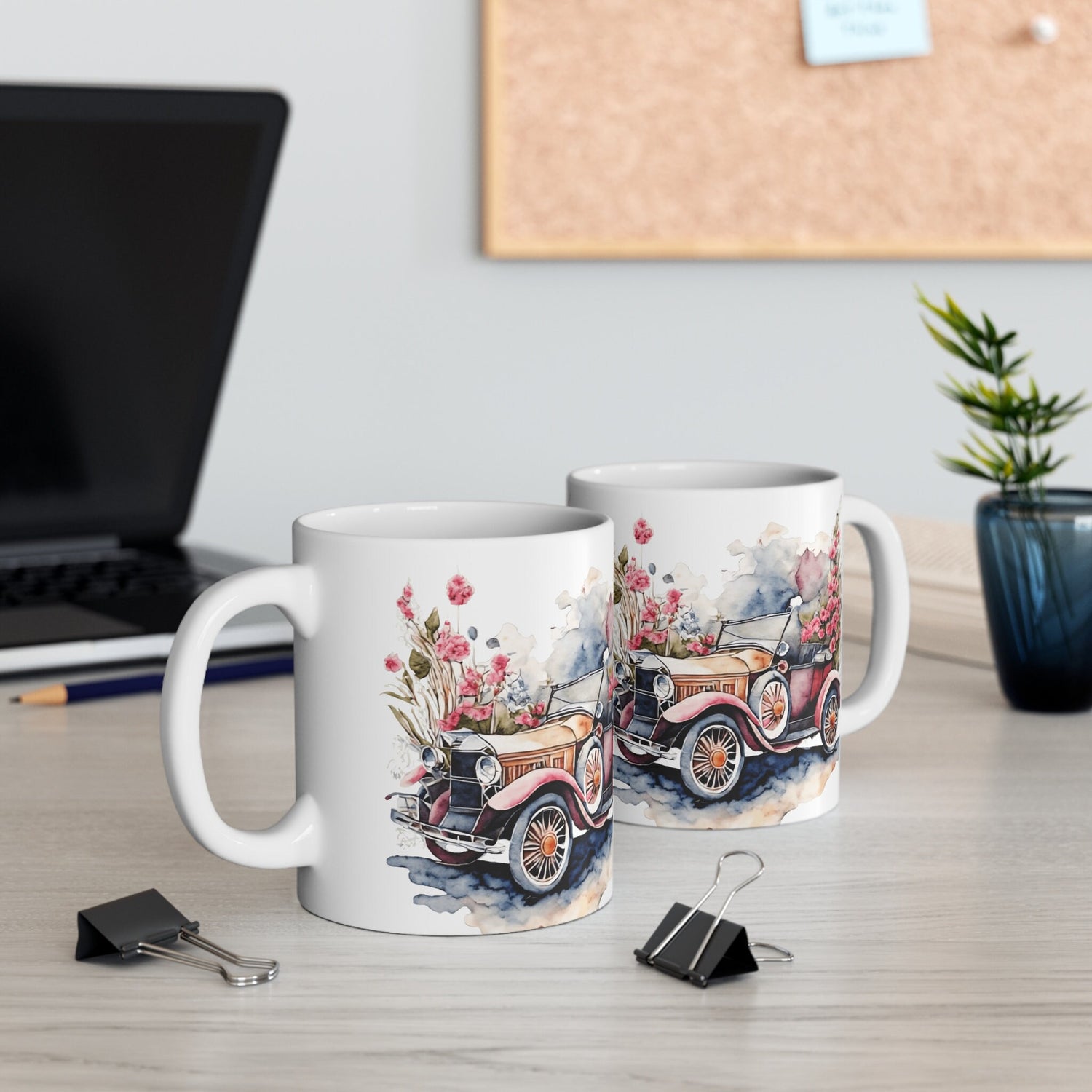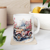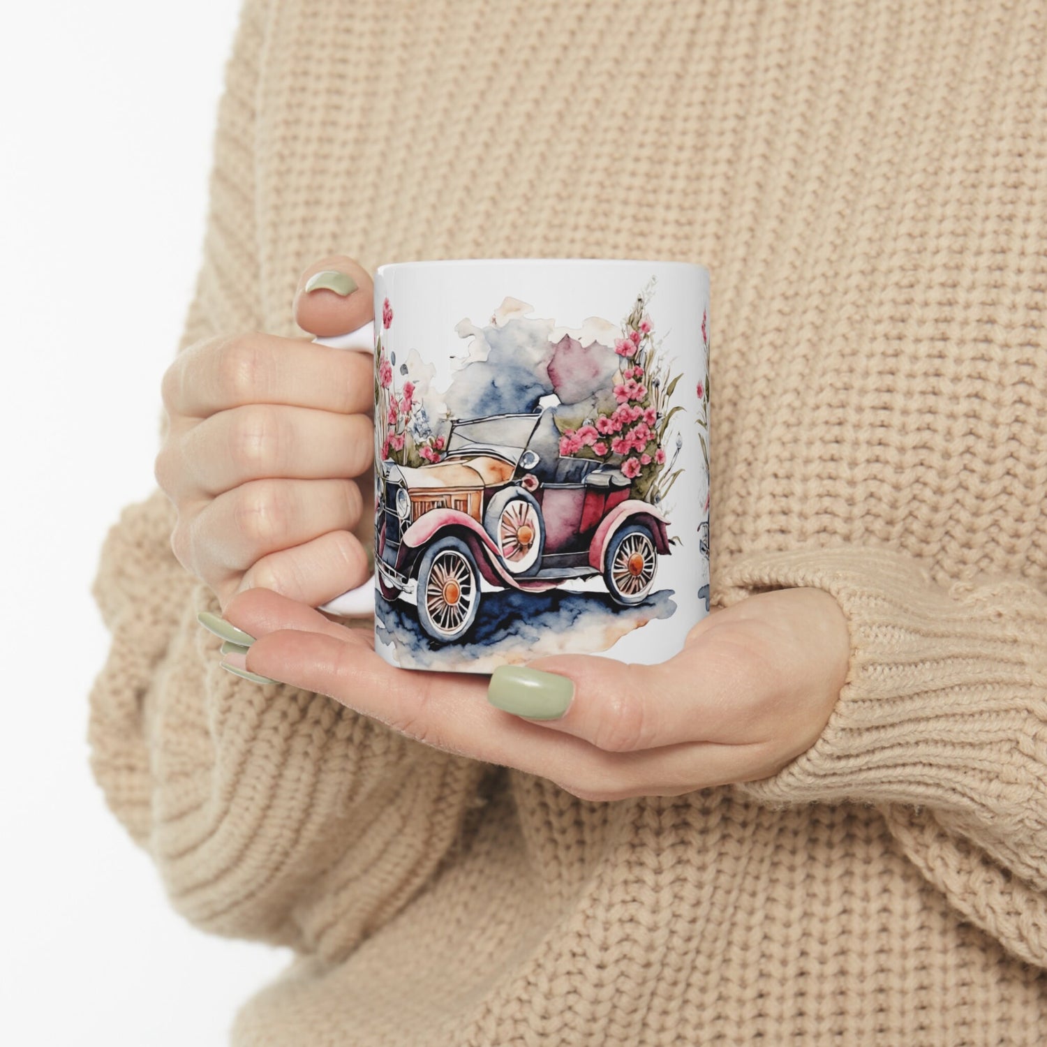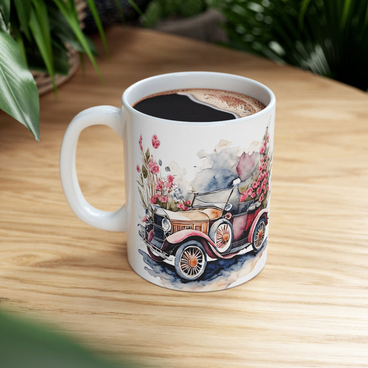 Ceramic Mug 11oz, Vintage Rose Car Coffee mug, Pretty Flowered mug, Pink classic mother mug, Valentines Flowery Mug, Mamma gift