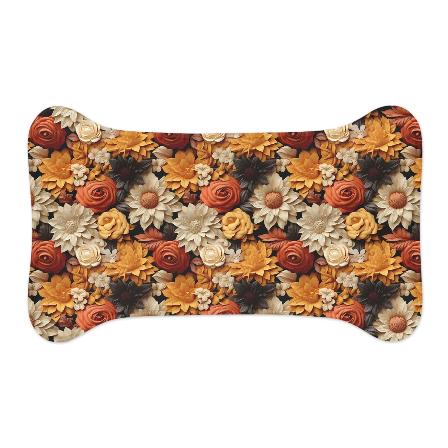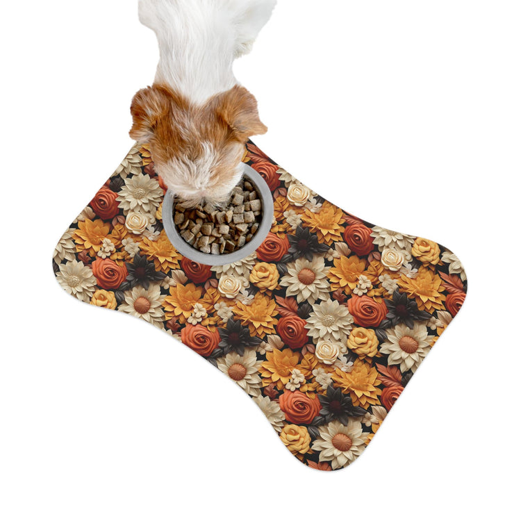 Fall Floral Pet Feeding Mats - Autumn All Over Print Pattern Design for Cat and Dog - Kitchen Decor Place Mat, Holiday Themed Food Mat