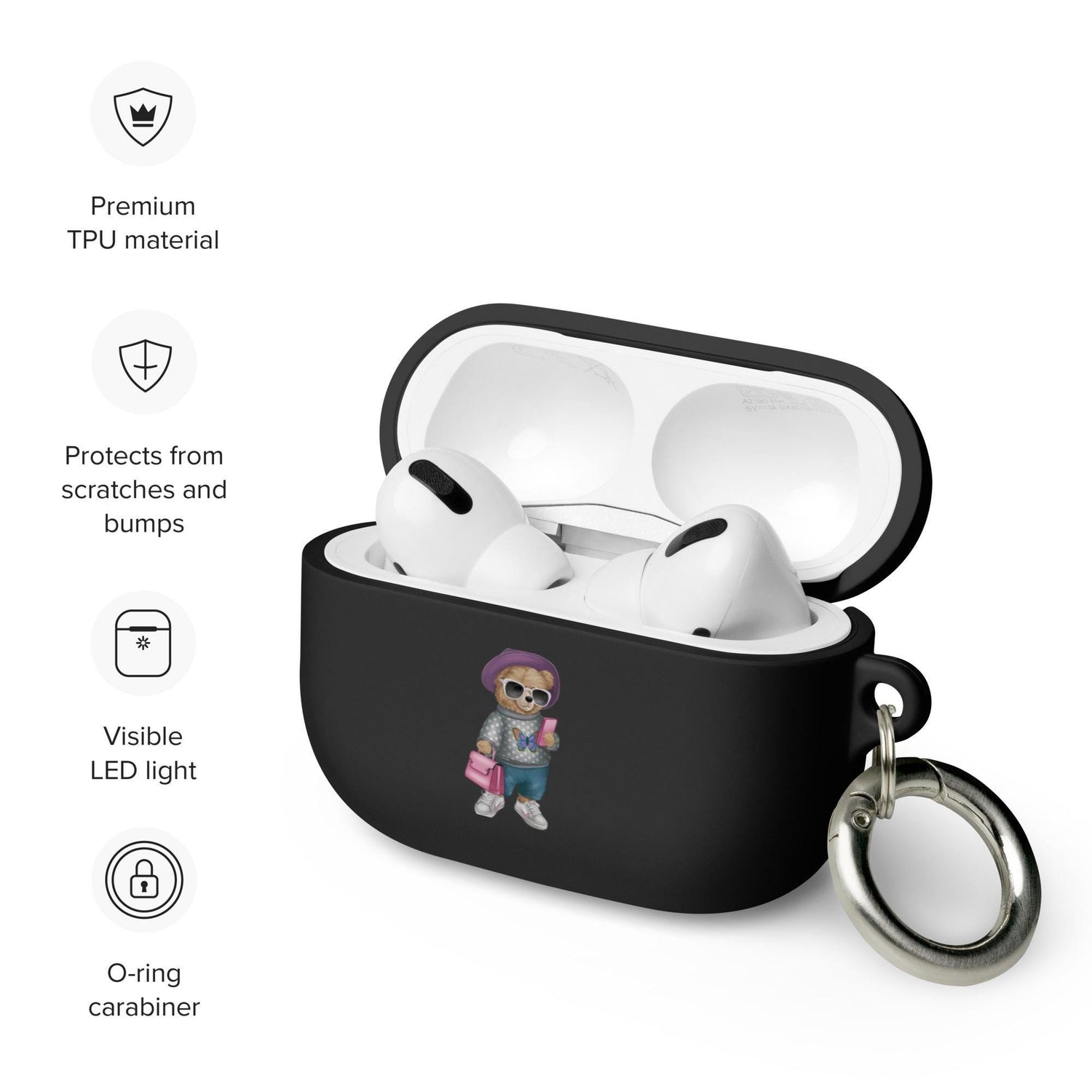 Rubber Case for AirPods®, Teddy Bear Fashion girl cute design ready for school airpods protective carrying case