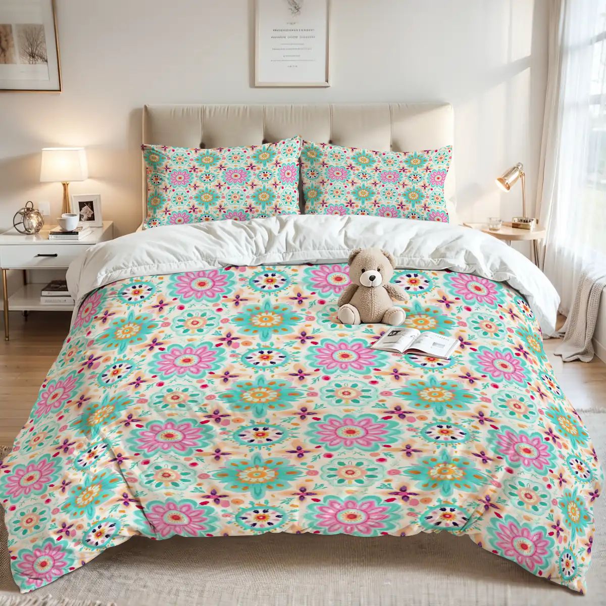 Vibrant Geometric Print Design Queen Duvet Cover Set