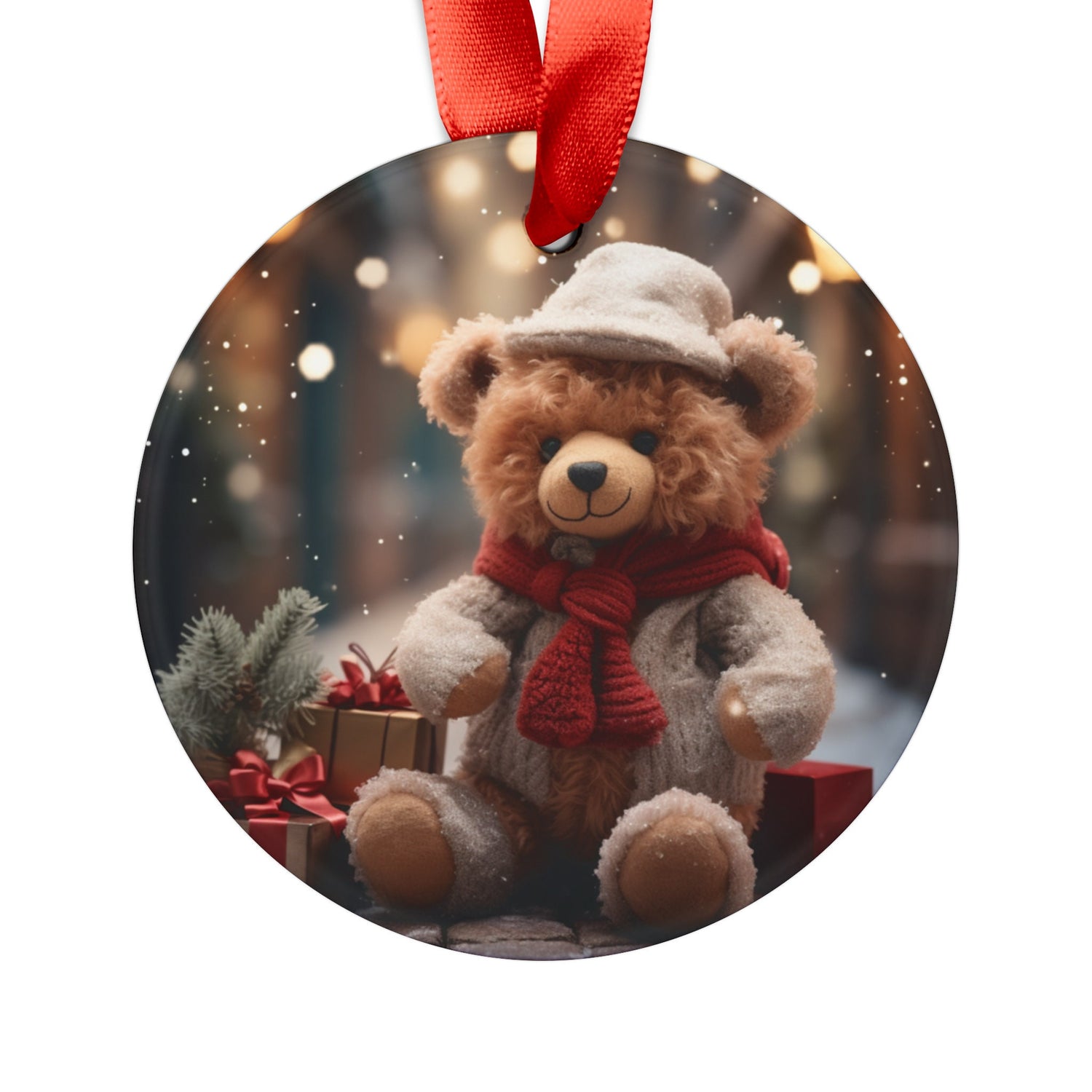 Acrylic Ornament with Ribbon, Teddy Bear Ornament, Holiday Tree, Christmas tree decoration, Holiday gift, Tree ornaments