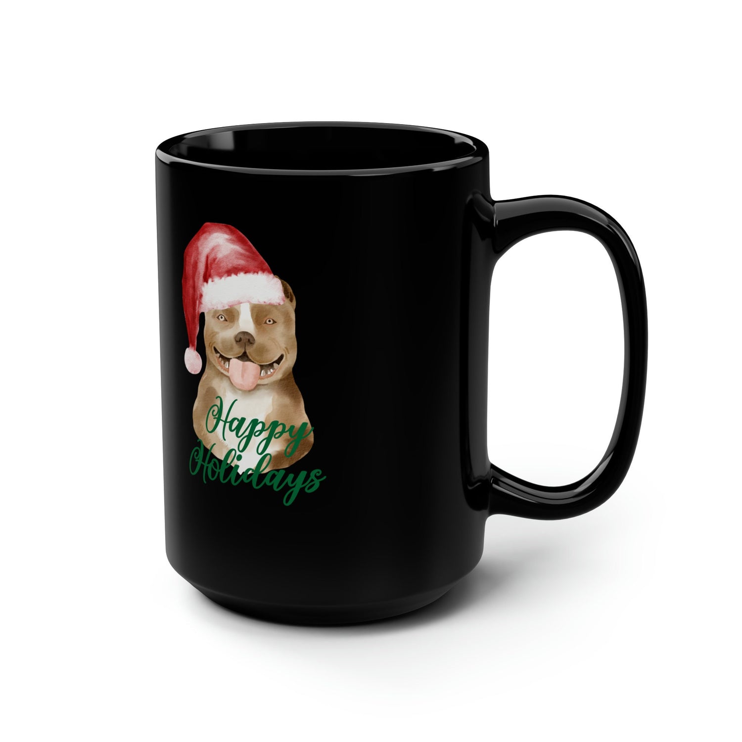 Black Mug, 15oz. PitBull Xmas, Holiday Mug, Kitchen decor, tall coffee mug, Xmas gift, Designer Mug, Pet Lover mug, Gift for him