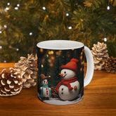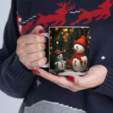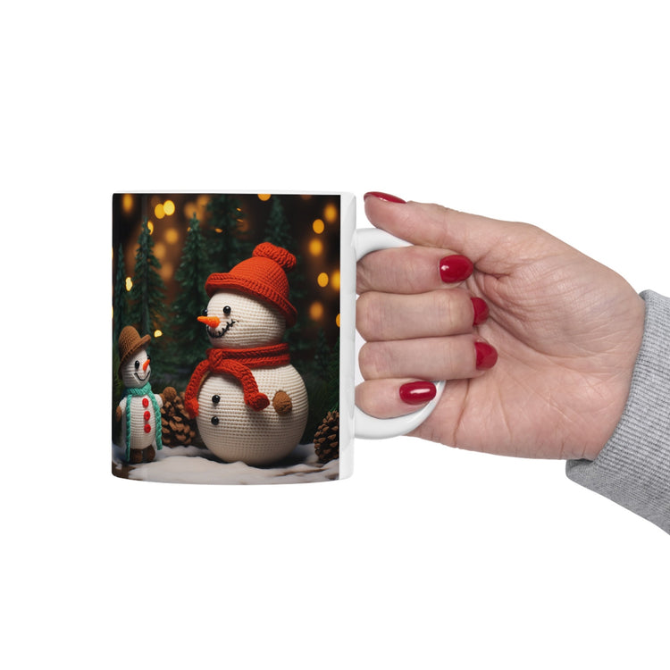 Ceramic Mug 11oz, snowman, Holiday mugs, Xmas Art, Hot Chocolate Mug, Gift for teacher, gift for nurse, Crochet Snowman