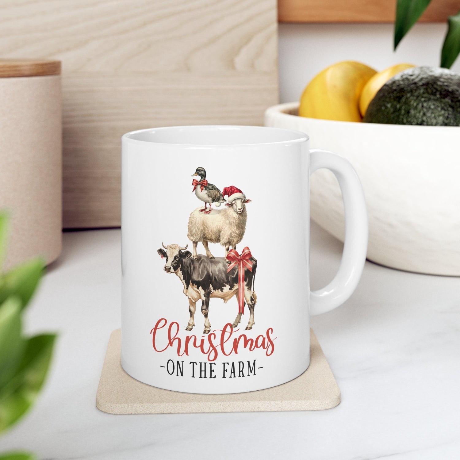 Ceramic Mug 11oz, White Country Xmas mug, Holiday Tea Mug, Novelty Coffee Mug, Xmas mug, Office Mug, Great Xmas gift