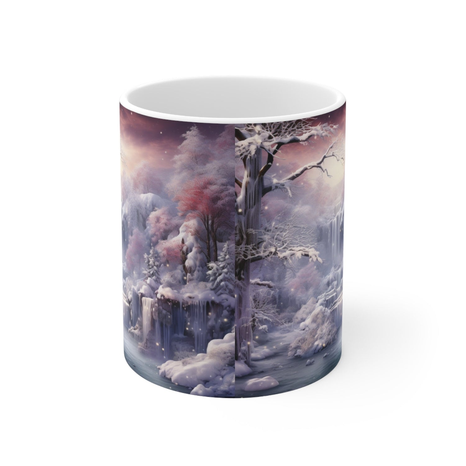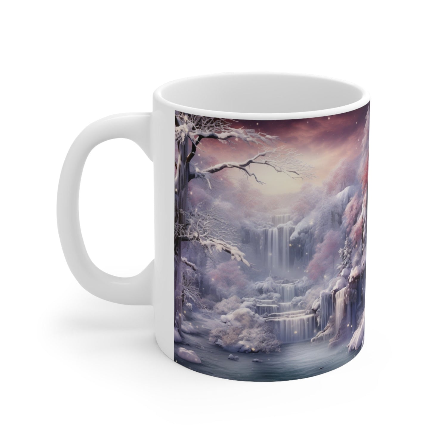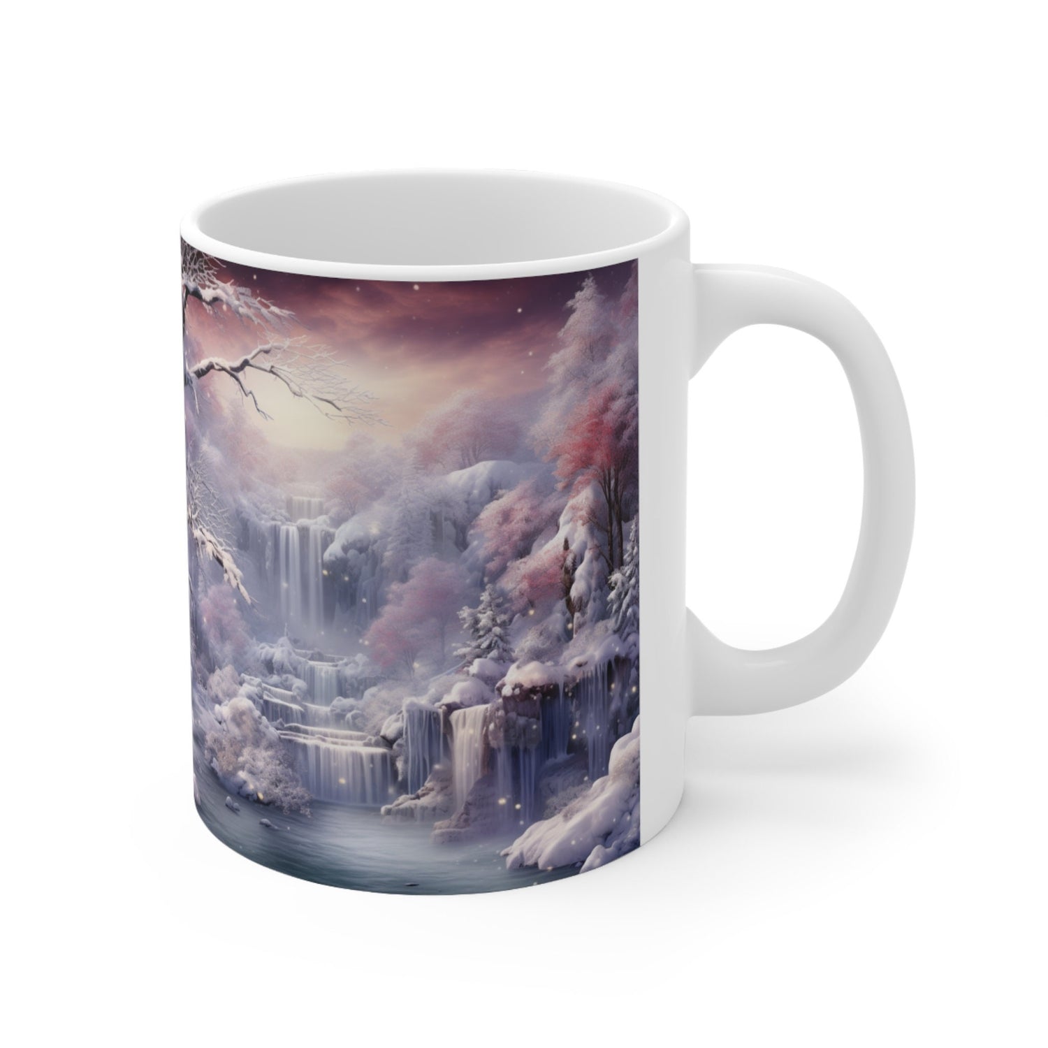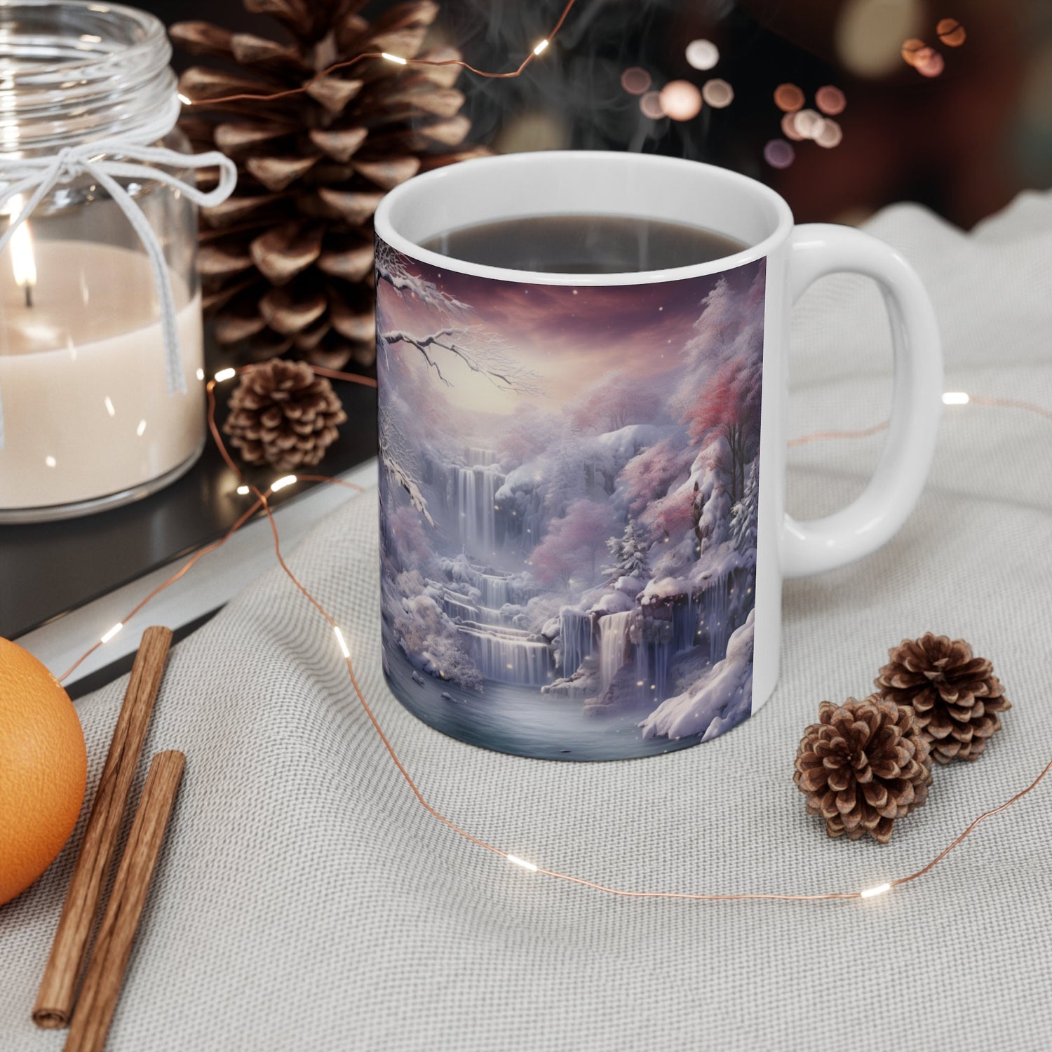 Ceramic Mug 11oz, Winter Cascade, Designer Mug, Colorful mug, Dreamy Mug, Xmas gift, Unique Mug, Mystic Art
