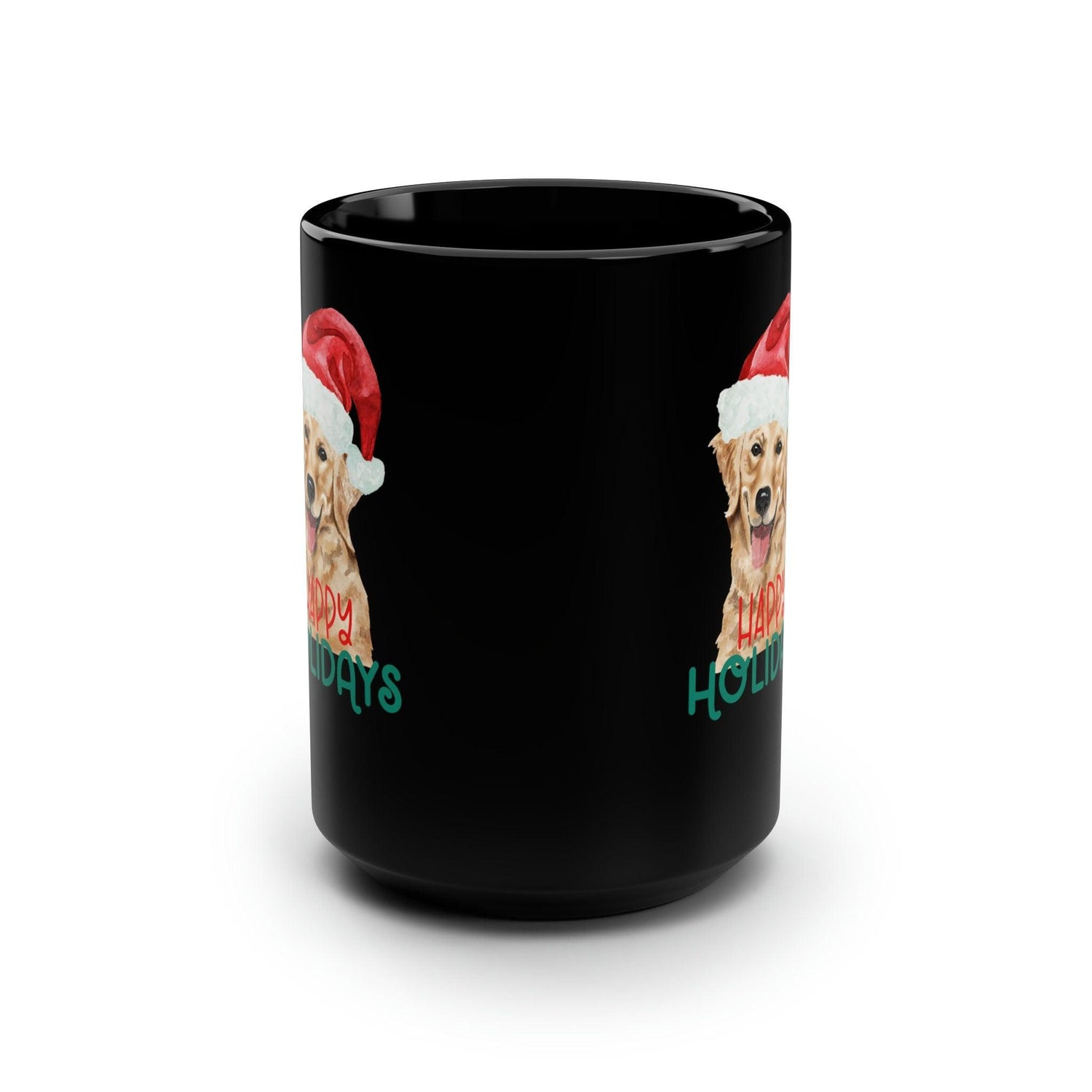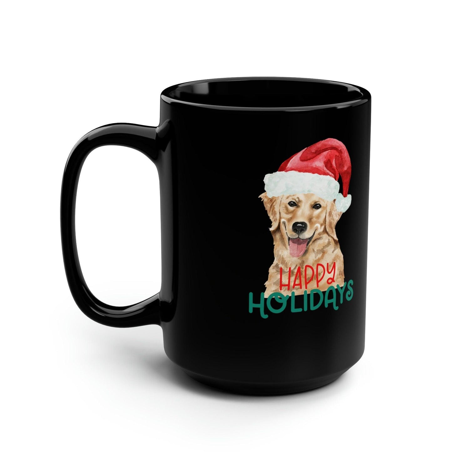 Christmas Golden Retriever Black Mug 15oz | Holiday Coffee Mug | Xmas Gift for Pet Lovers | Happy Mug | Dog Art Coffee Mug | Holiday Decor