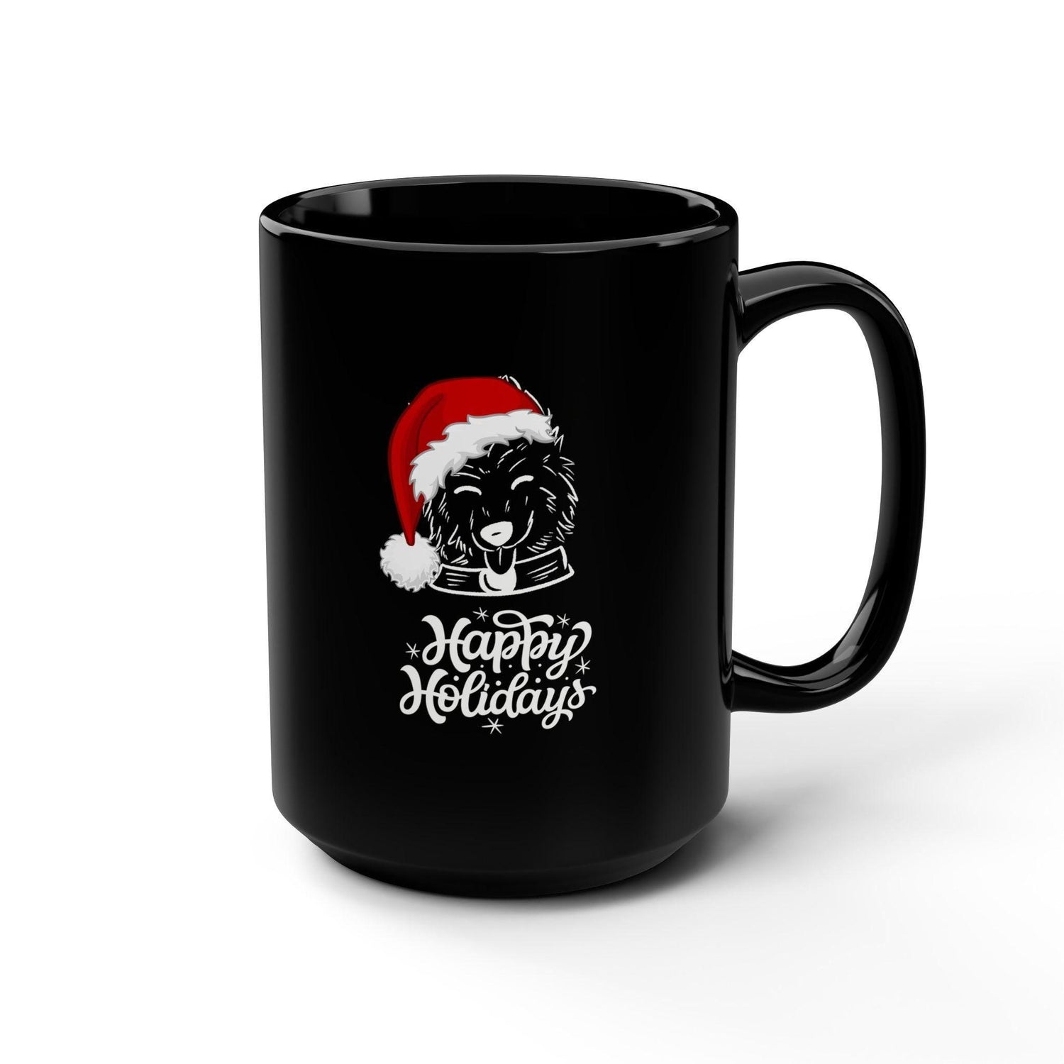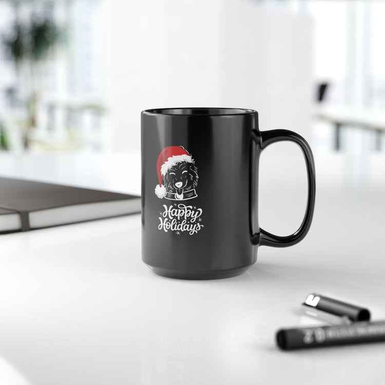 Dog Lover Mug, Happy Holiday Black Mug, 15oz, Doggy Santa Design Large Coffee Mug, Xmas Gift, Kitchen Mug, Party Gift, Holiday Mug,