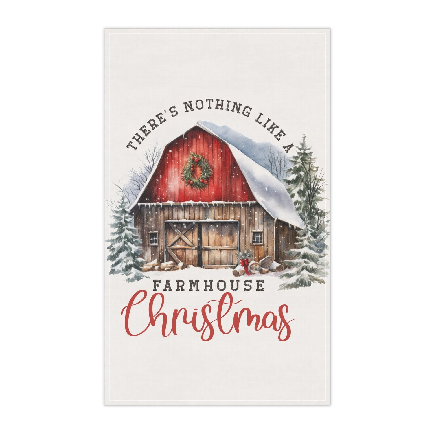 Farmhouse Xmas Kitchen Towel, great for hand drying, cooking, and xmas gifts. Adds a festive touch to your kitchen decor. Perfect for those who love holiday cooking and decorating during Christmas.