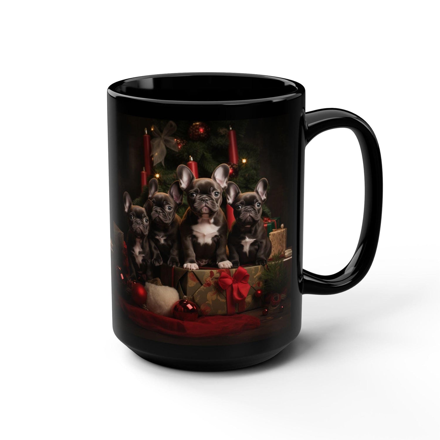 Holiday Frenchie Dog 15oz Black Mug - Pet Lovers Christmas Gift, Coffee Tea Cup for Doctors and Vet Office, Holiday Dogs Mug