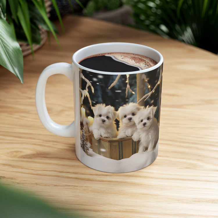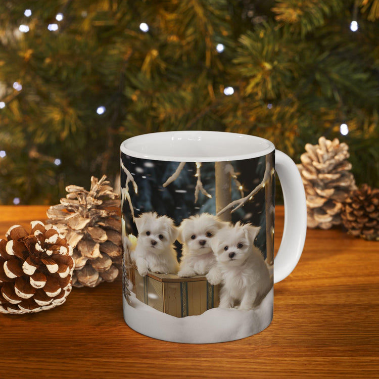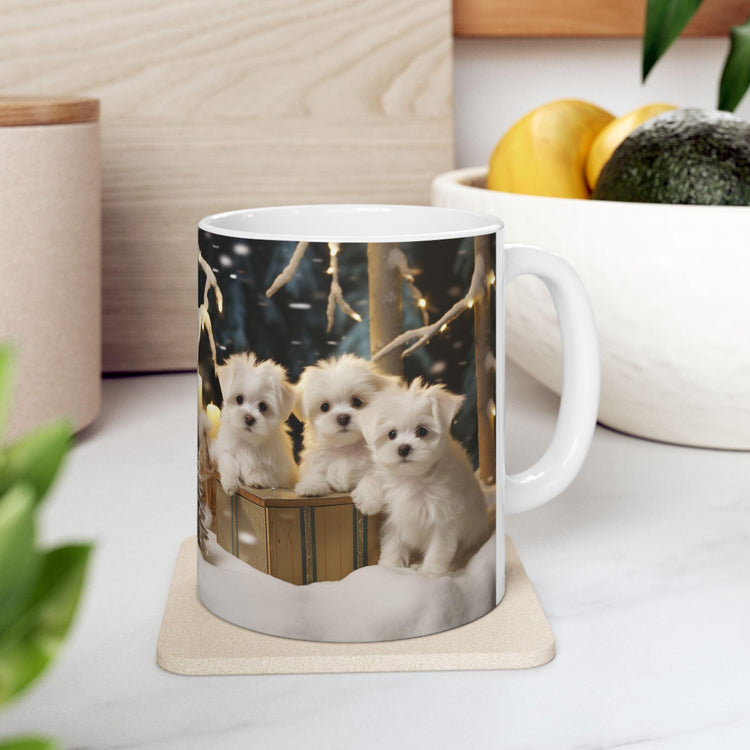 Maltese Dog Christmas Mug - White Xmas Puppy Coffee Cup for Dog Lovers, Nurses, Teachers - Holiday Gift, 11oz Ceramic