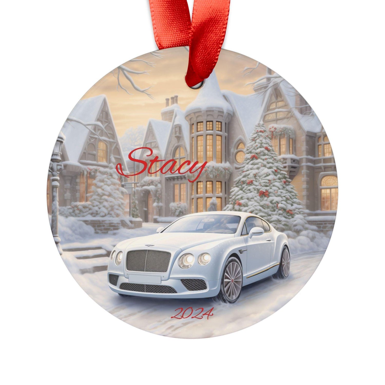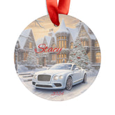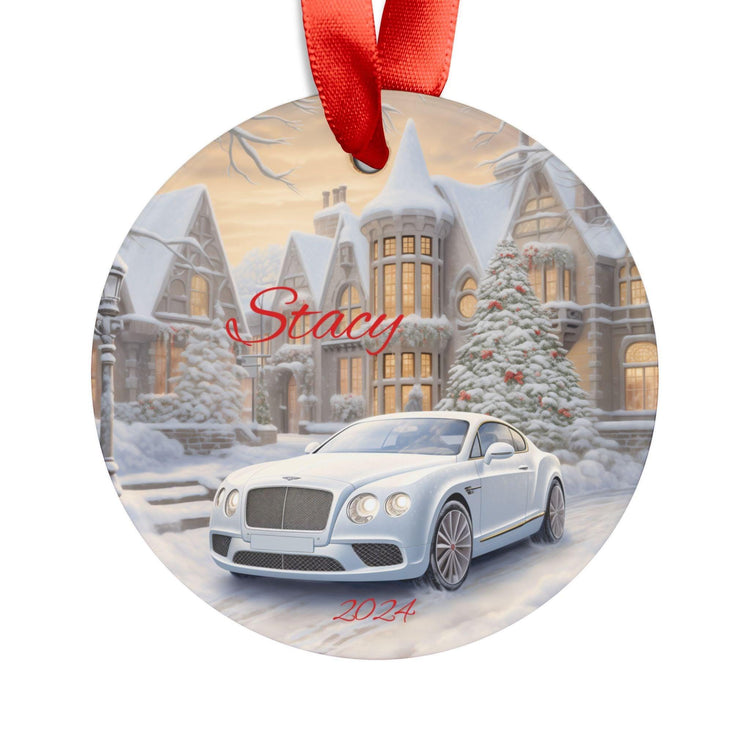 Personalized Acrylic Ornament with Car and Winter Wonderland Scene, Holiday Decor, Christmas Gift, Customized Keepsake, White Bentley