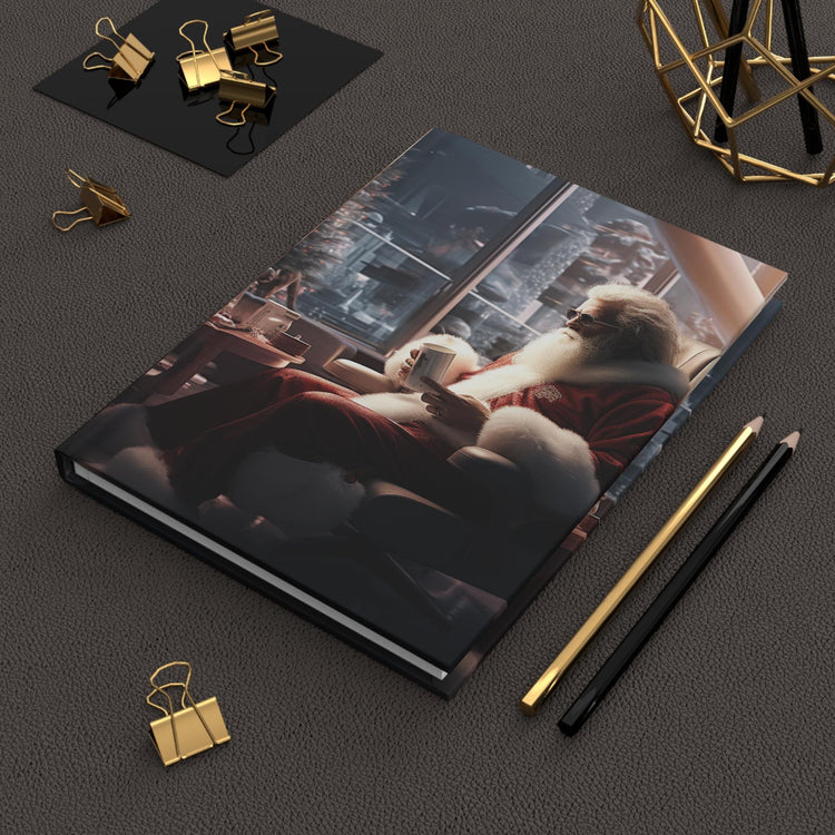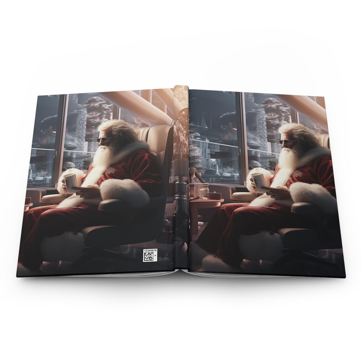 Santa Hardcover Journal Matte, Christmas Holiday XMAS Daily Diary Notebook, Personal Journal Gift Stocking Stuffer