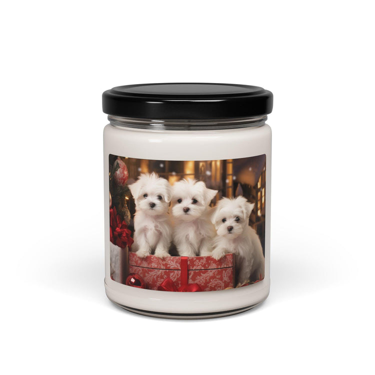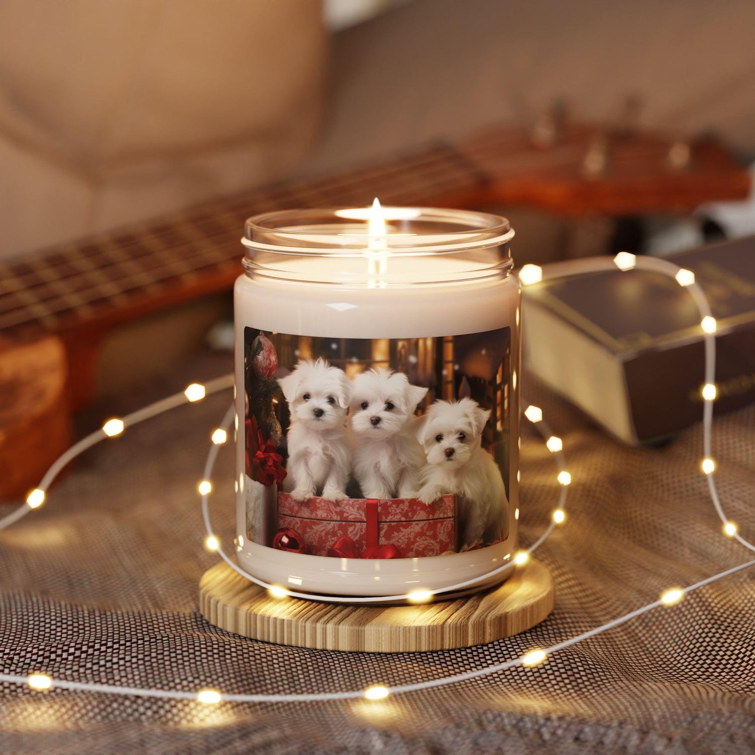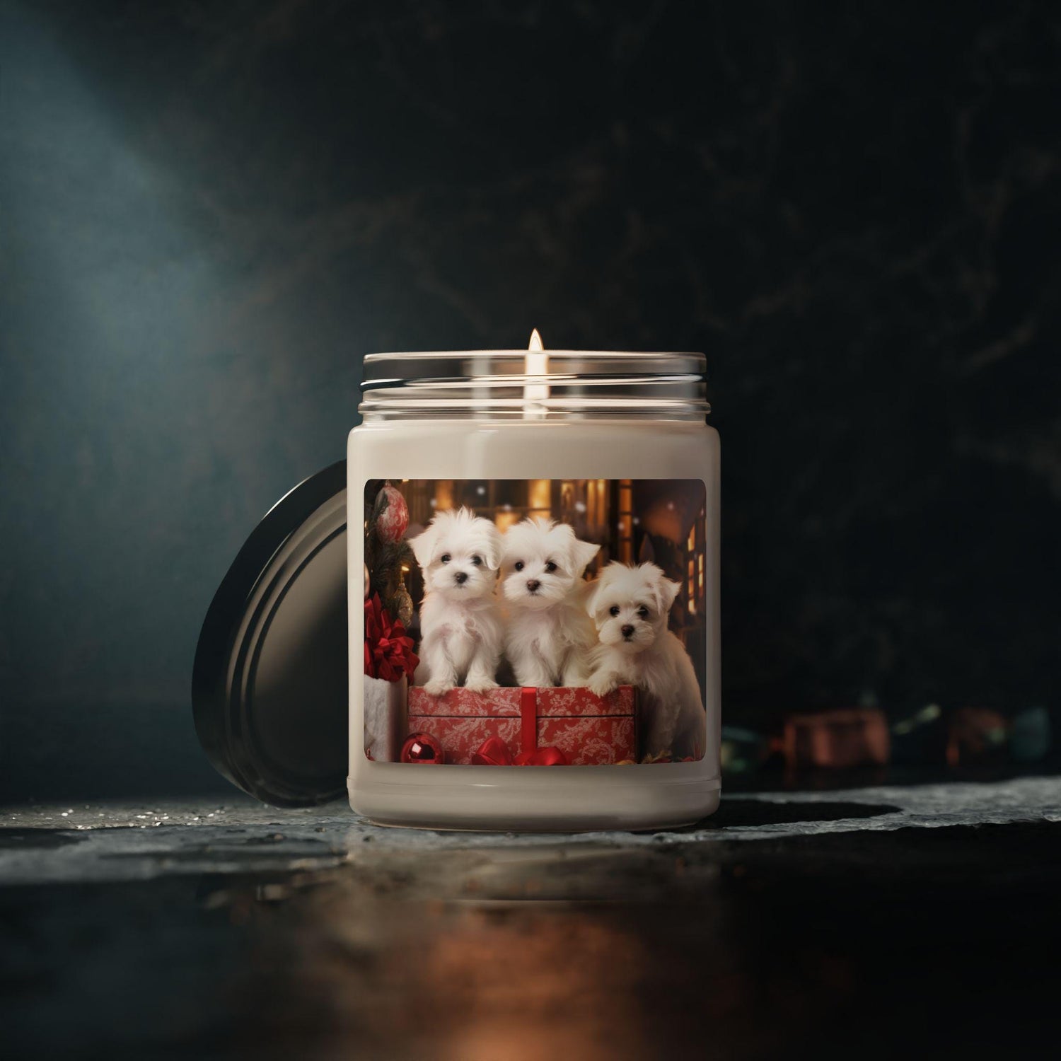 Scented Candle, Xmas Maltese Design - Cinnamon Scented 9oz, Puppy Love - Best Selling Home Decor Gift, Christmas Holiday Candle, Festive