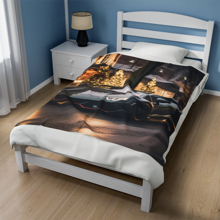 Velveteen Plush Blanket, Black Lamborghini warm soft fleece designer teen young college student dorm bedroom holiday bedspread blanket