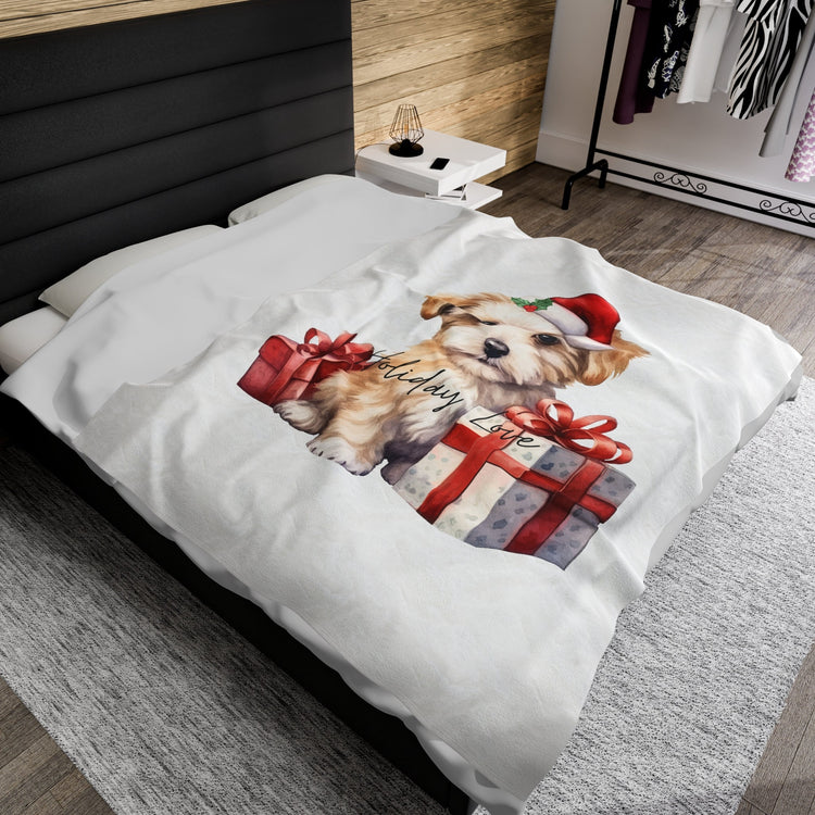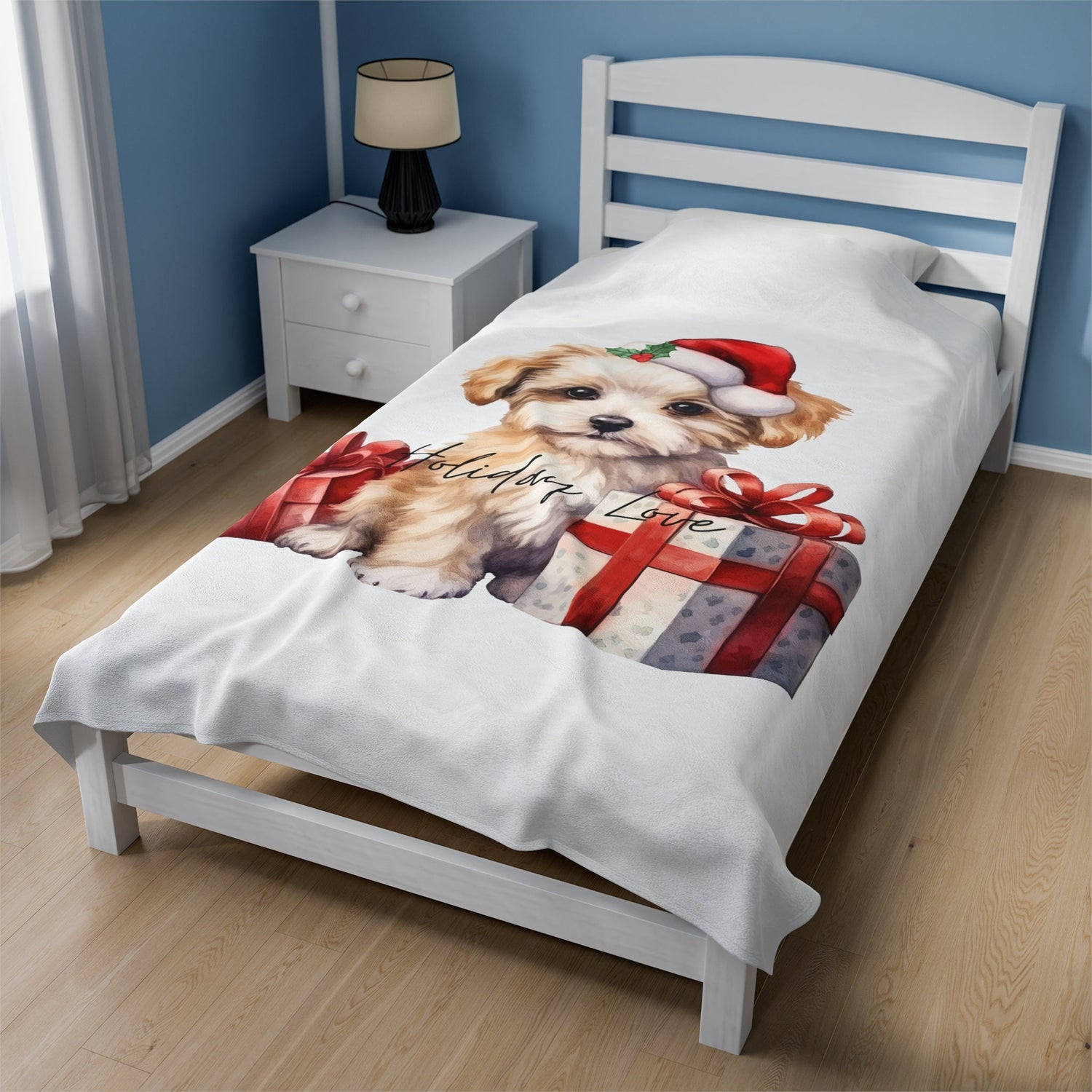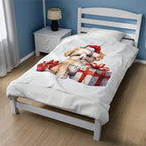Velveteen Plush Blanket, Holiday Bed cover, Cute designer blankets, Festive Holiday items, White Winter Blanket, Fleece bed Cover