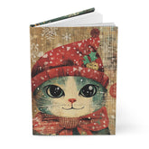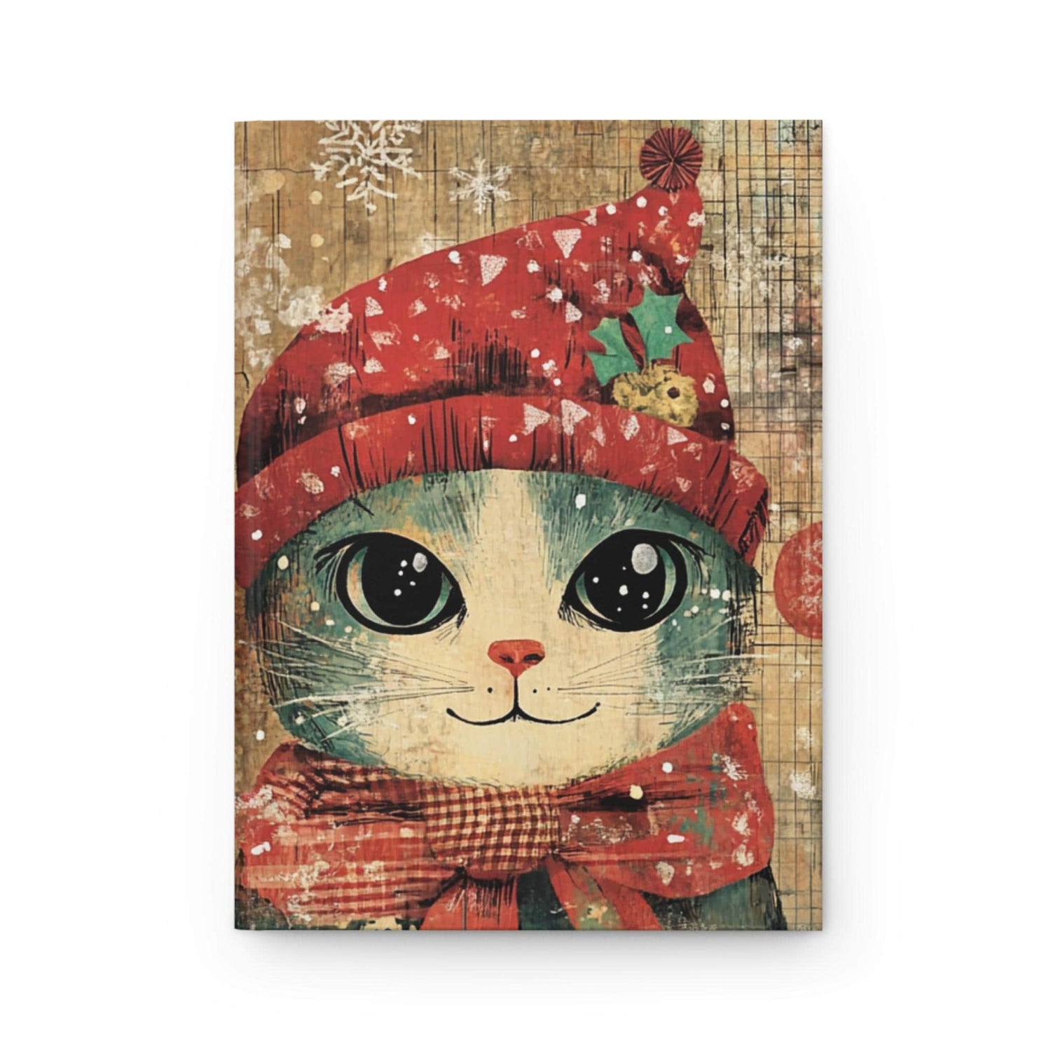 Whimsical Cat Hardcover Journal | Cute Cat Diary, Christmas Gift, Pet Lover Notebook, Winter Journal, Vintage Style Stationery