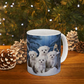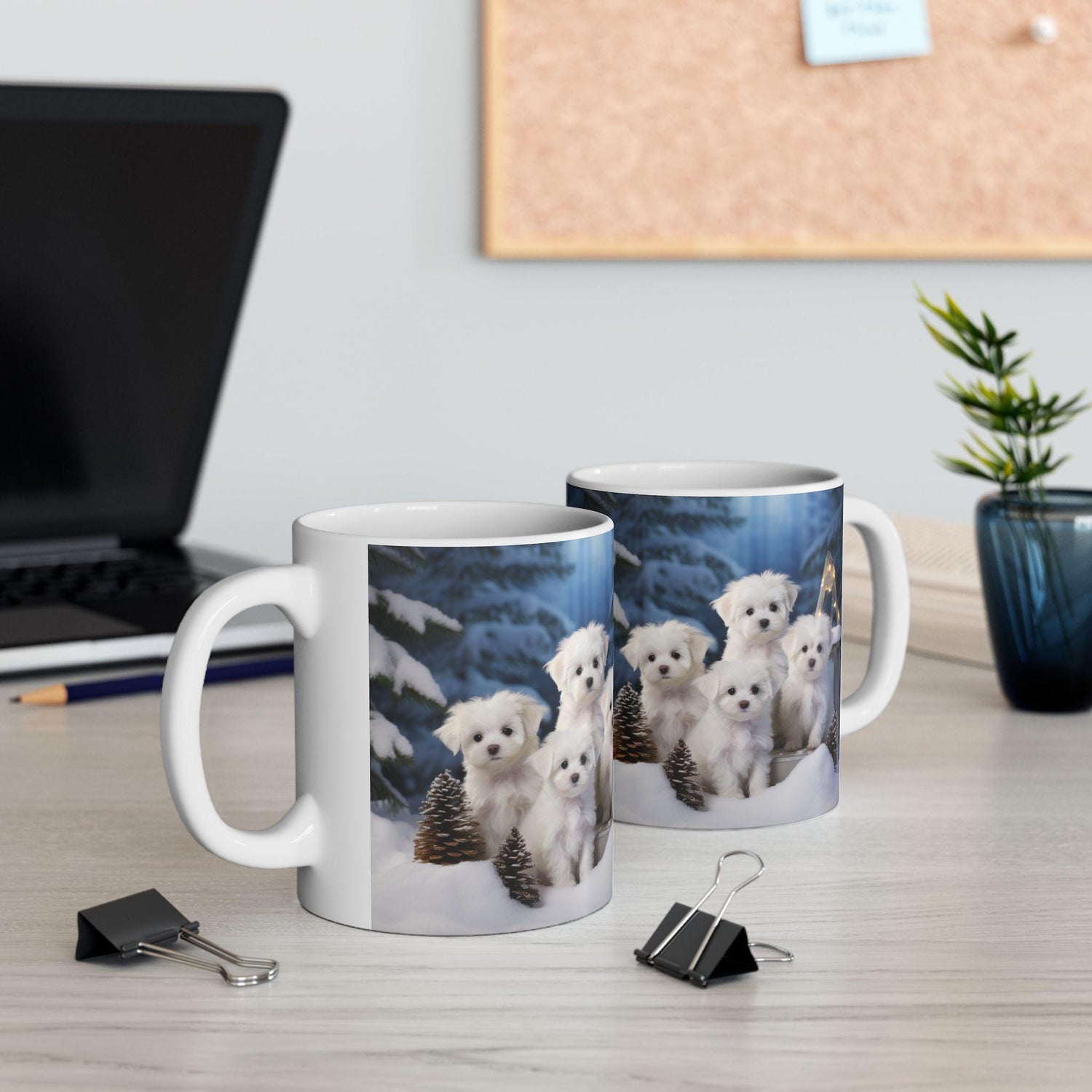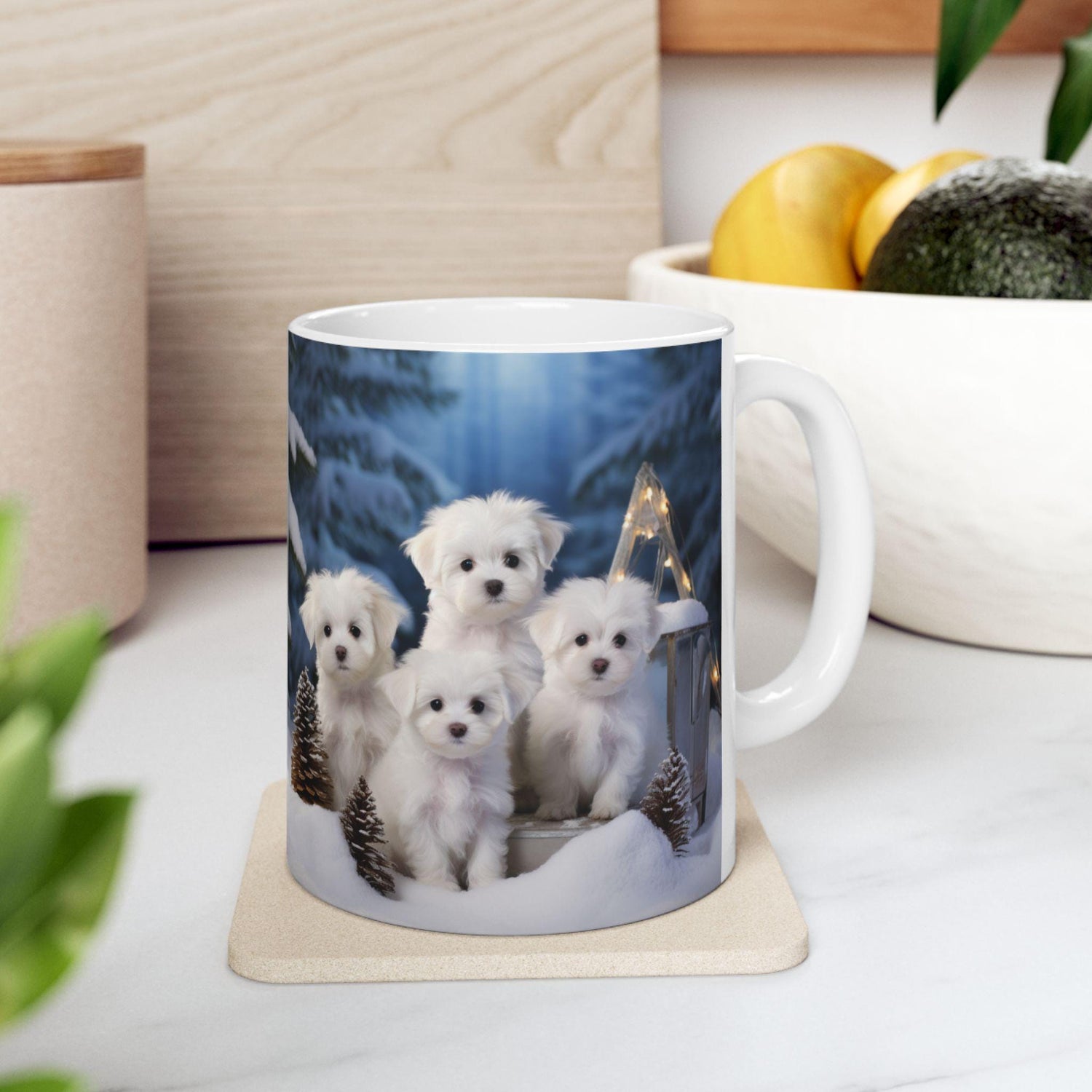 White Xmas Maltese Ceramic Mug 11oz, Holiday Gift, Puppy Love Coffee Cup, Kitchen Decor, Best Gift, Xmas Mug