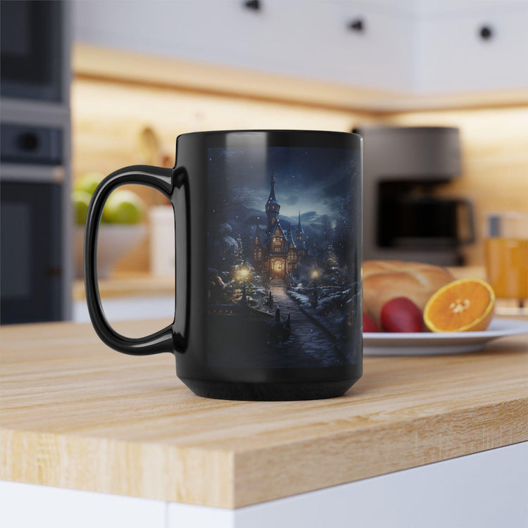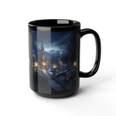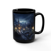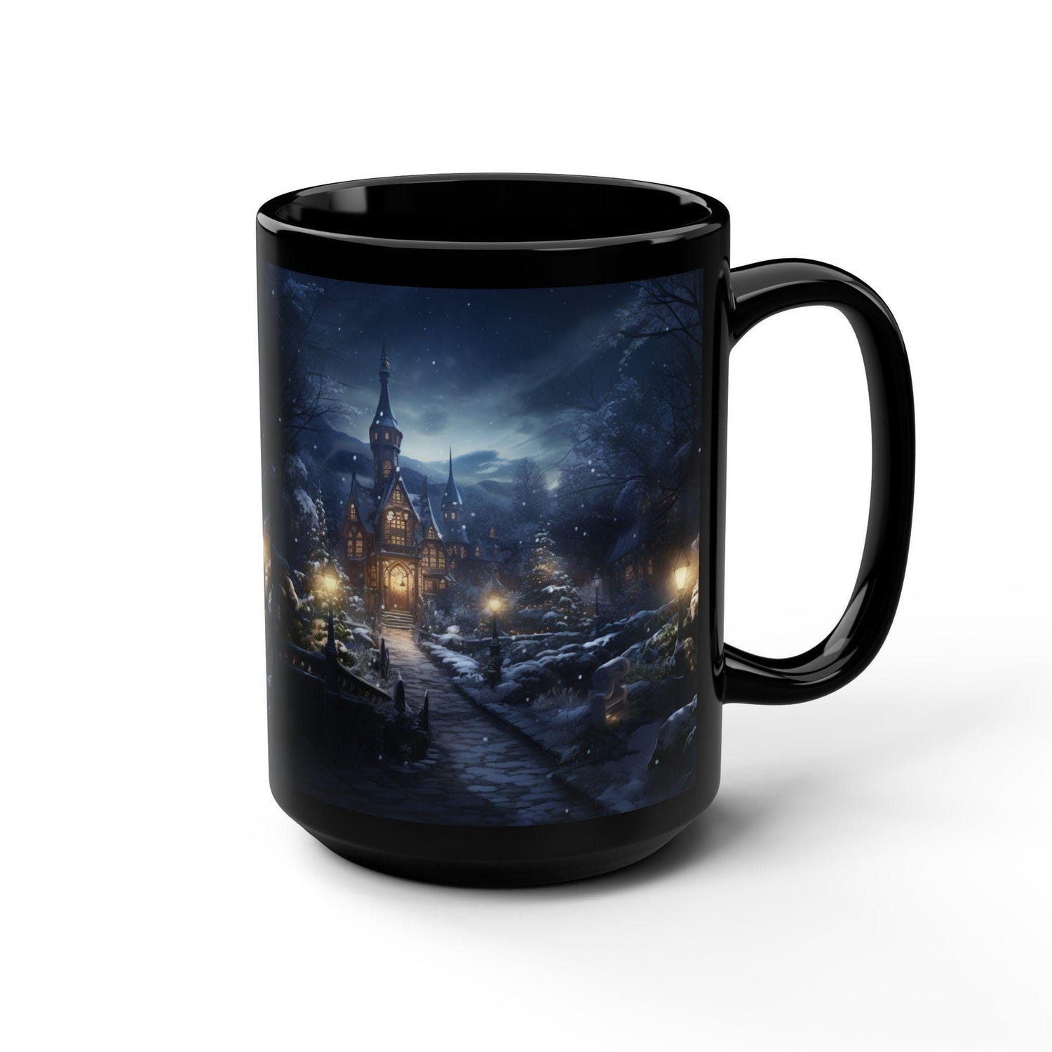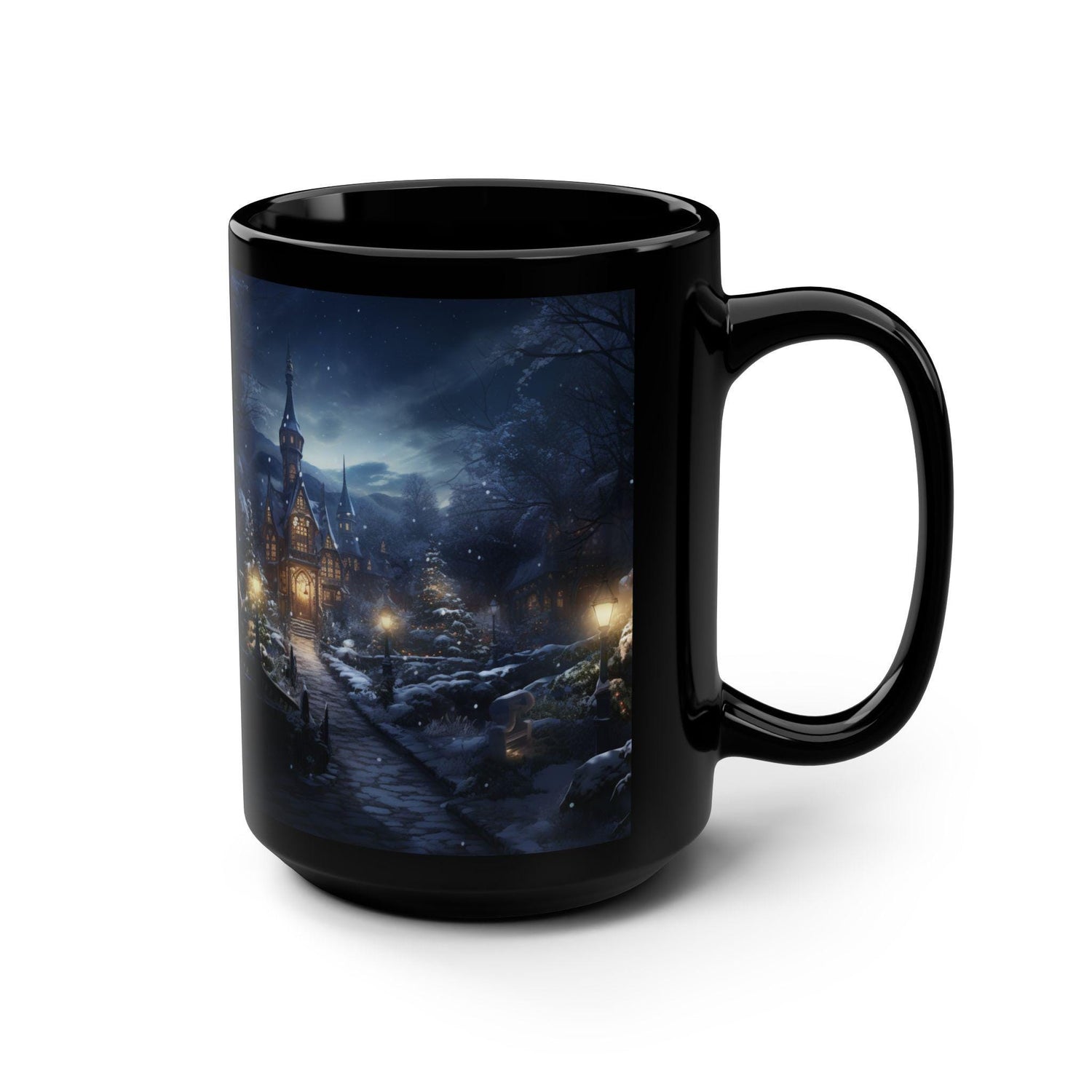 Winter's Night Scenery Black Mug, 15oz - Holiday Novelty Mug, Designer Portrait Mug, Home Decor, Stocking Stuffer