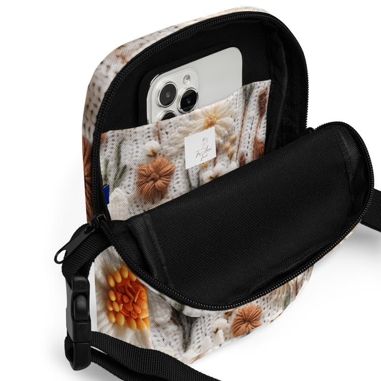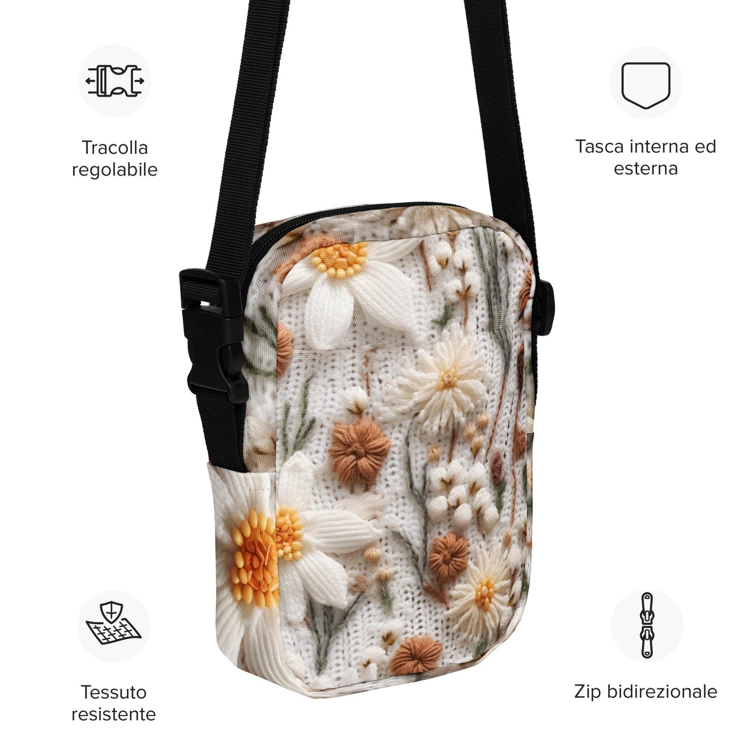 Utility crossbody bag 3D crochet style floral print design durable water resistant durable everyday minimilist school office purse