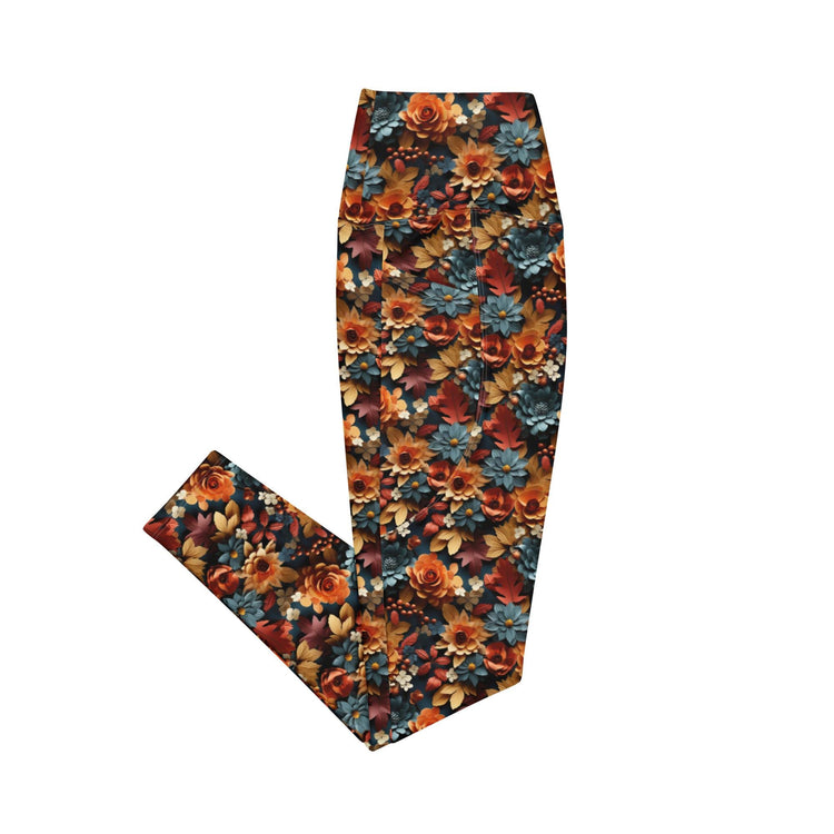Autumn Floral Leggings with Pockets - Workout and Casual Wear