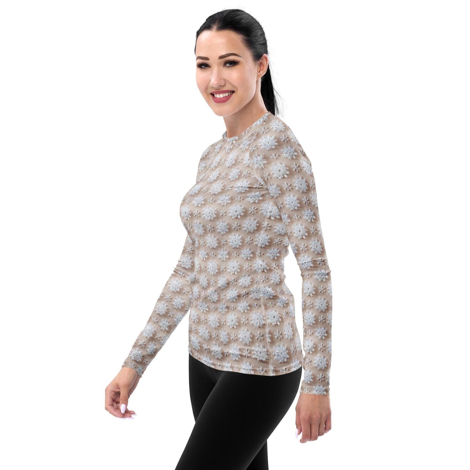 Winter Wonderland Snowflake Design Women’s Rash Guard – Long Sleeve UV Protection, Stylish Winter Swimwear, Xmas Holiday Beachwear