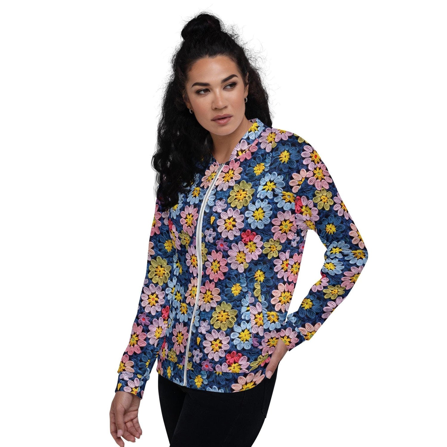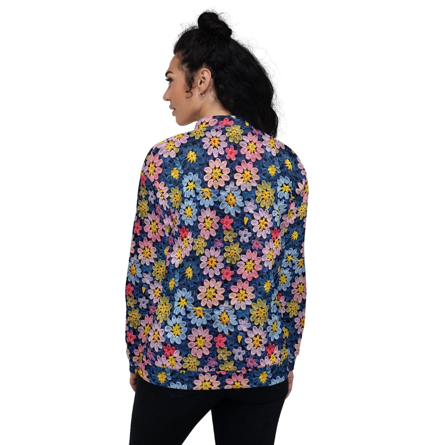 Women's floral Bomber Jacket, Stylish crochet classy casual dressy elegant feel pair with jeans or over dress or hoodie