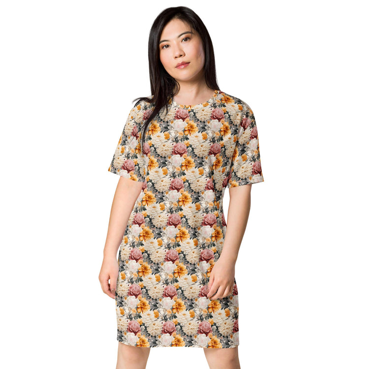 Blooming Elegance: Oversized Floral Print T-Shirt Dress for Versatile Everyday Wear