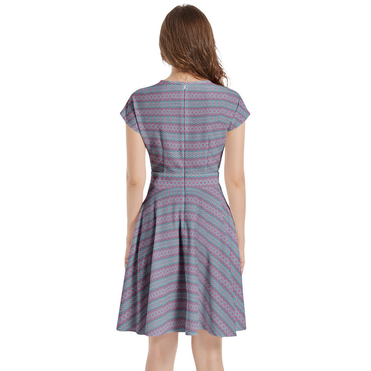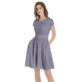 Indulge in elegance with our Womens Vibrant Blue Purple Short Sleeve Dress. This A-Line dress boasts a vibrant color combination and comfortable short sleeves, perfect for any casual occasion. The above the knee length adds a touch of flirtiness, making it a versatile addition to your wardrobe.
