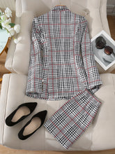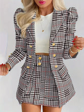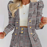 Ladies Fashion Casual Slim Suit Two-piece Plaid Pattern with Buttons, Lapel Long Sleeve Suit Jacket and High Waist Skirt