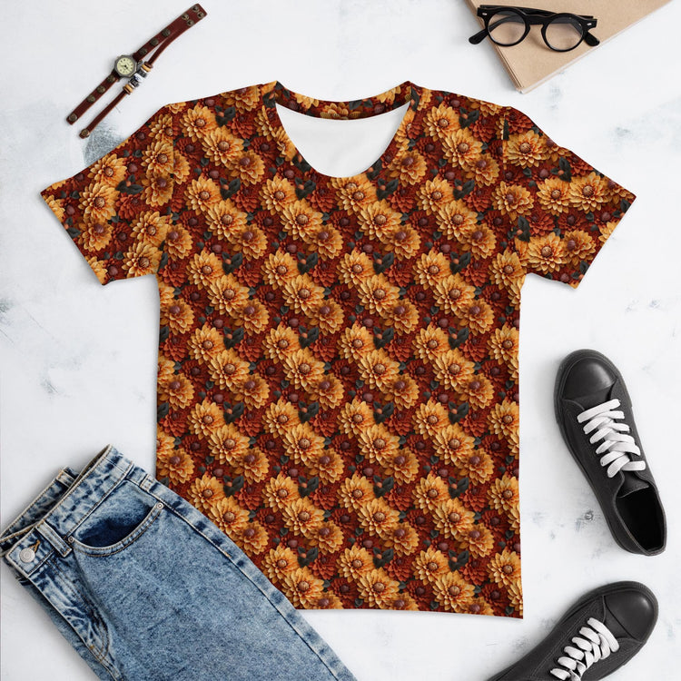 Women's T-shirt, Autumn floral all over print casual Fall fashion jean shorts skirt stylish everyday attractive shirt