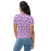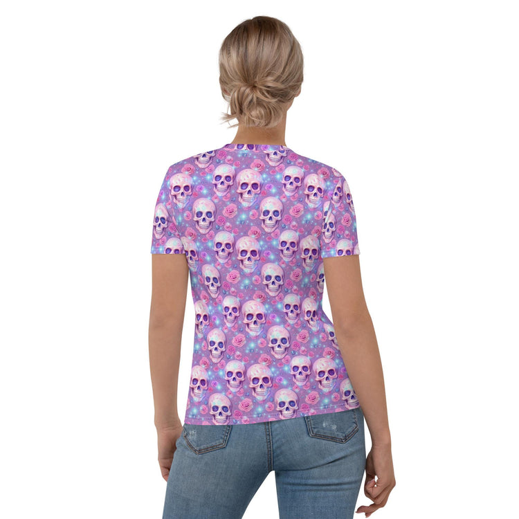 Women's T-shirt, Halloween purple hue sugar skull bright pattern female style humorous corky casual nurse college student lady shirt