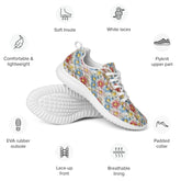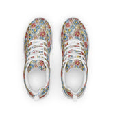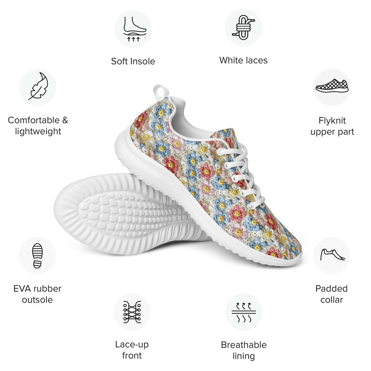 Women’s athletic shoes, light color crotchet print pattern design hand crafted fashion style casual soft pretty everyday comfy sporty shoe