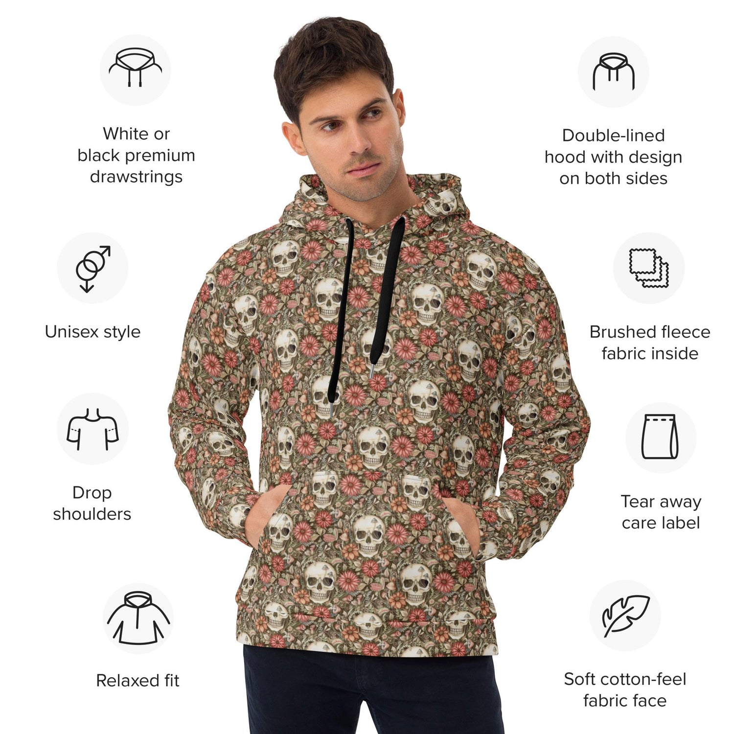 Sudadera con capucha para hombre con estampado de calavera de azúcar floral gótico, temática navideña, informal, deportiva, cálida, de polar, suave y elegante, un gran regalo para él