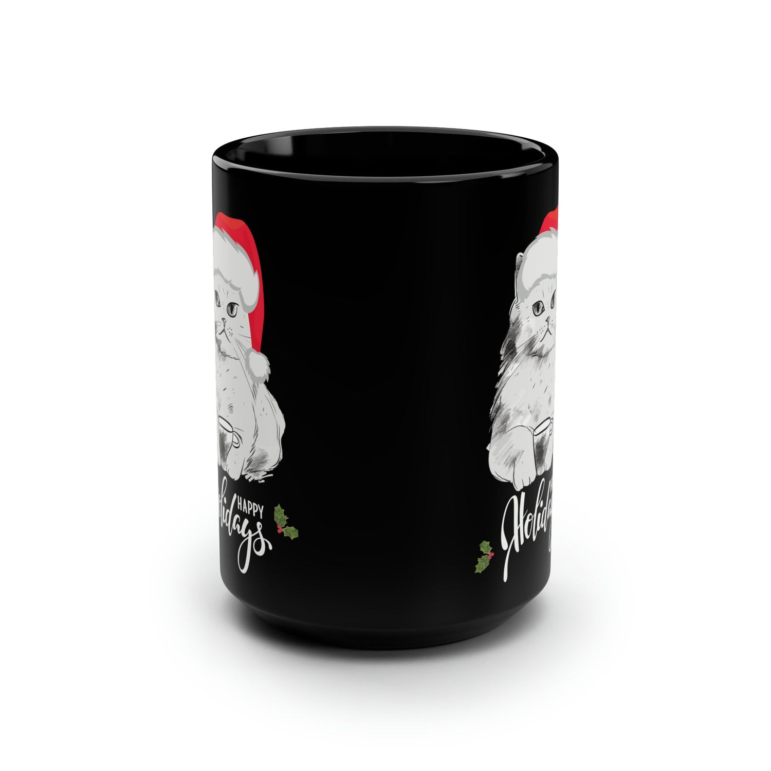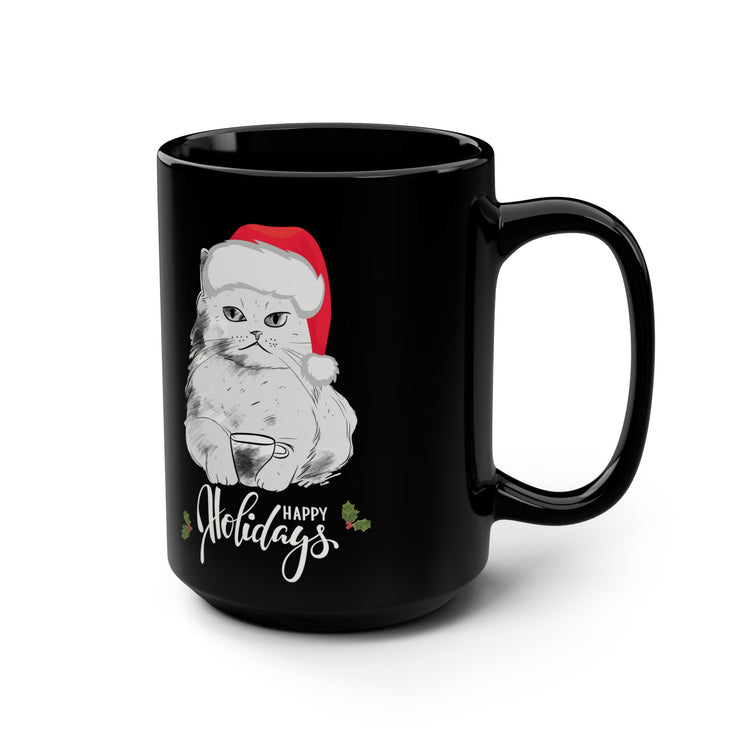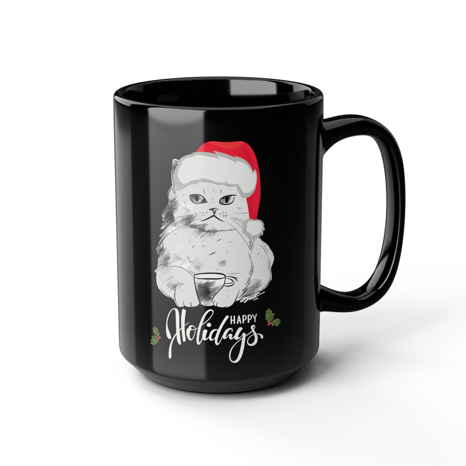 Taza negra de 15 oz - Gato navideño con gorro de Papá Noel - Regalo perfecto para los amantes de los gatos